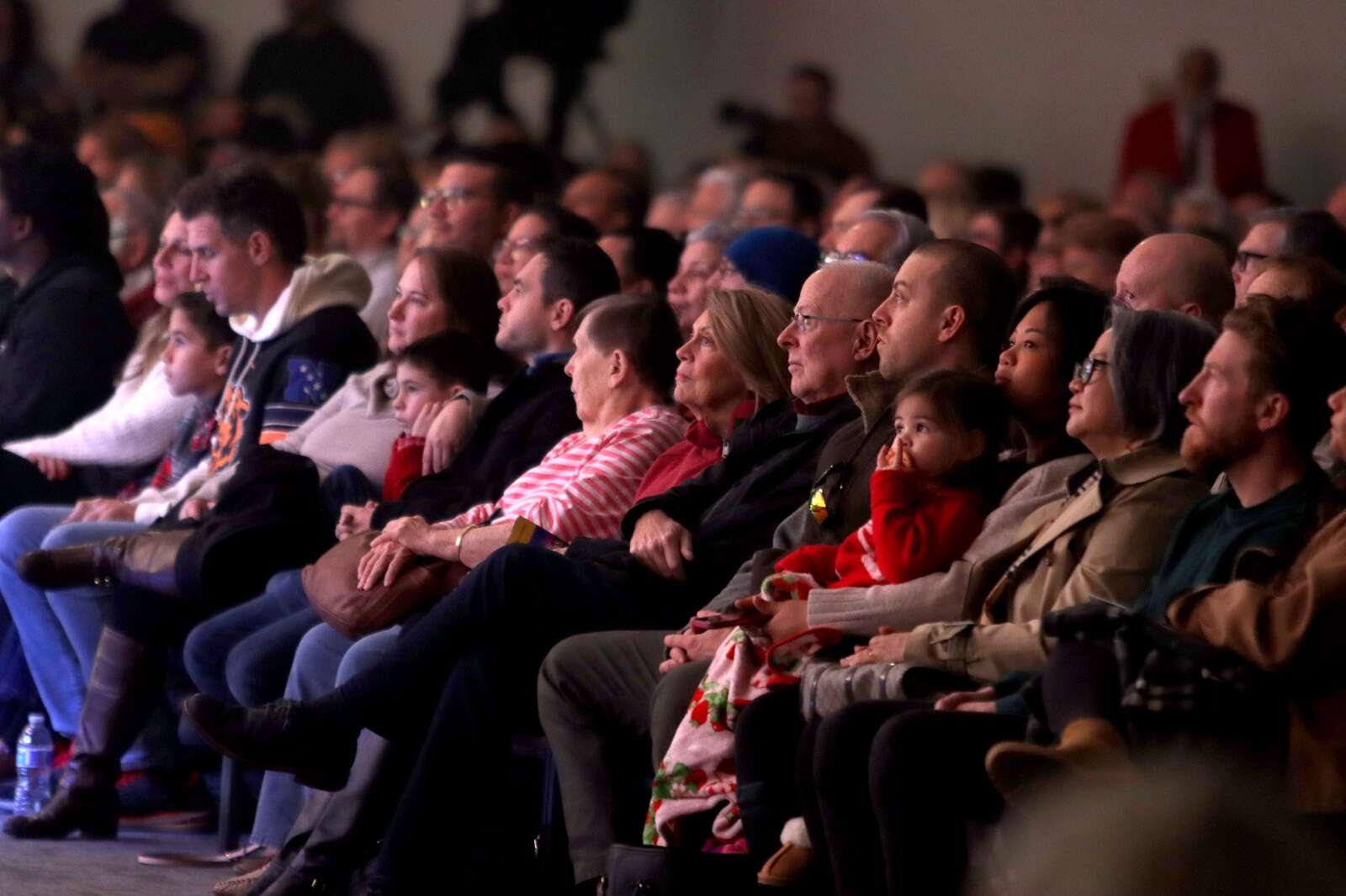 Audience members watch as the Quentin Road Baptist Church in Lake Zurich performs its Christmas pageant Sunday featuring dozens of performers and live animals. Patrick Kunzer/for the Daily Herald