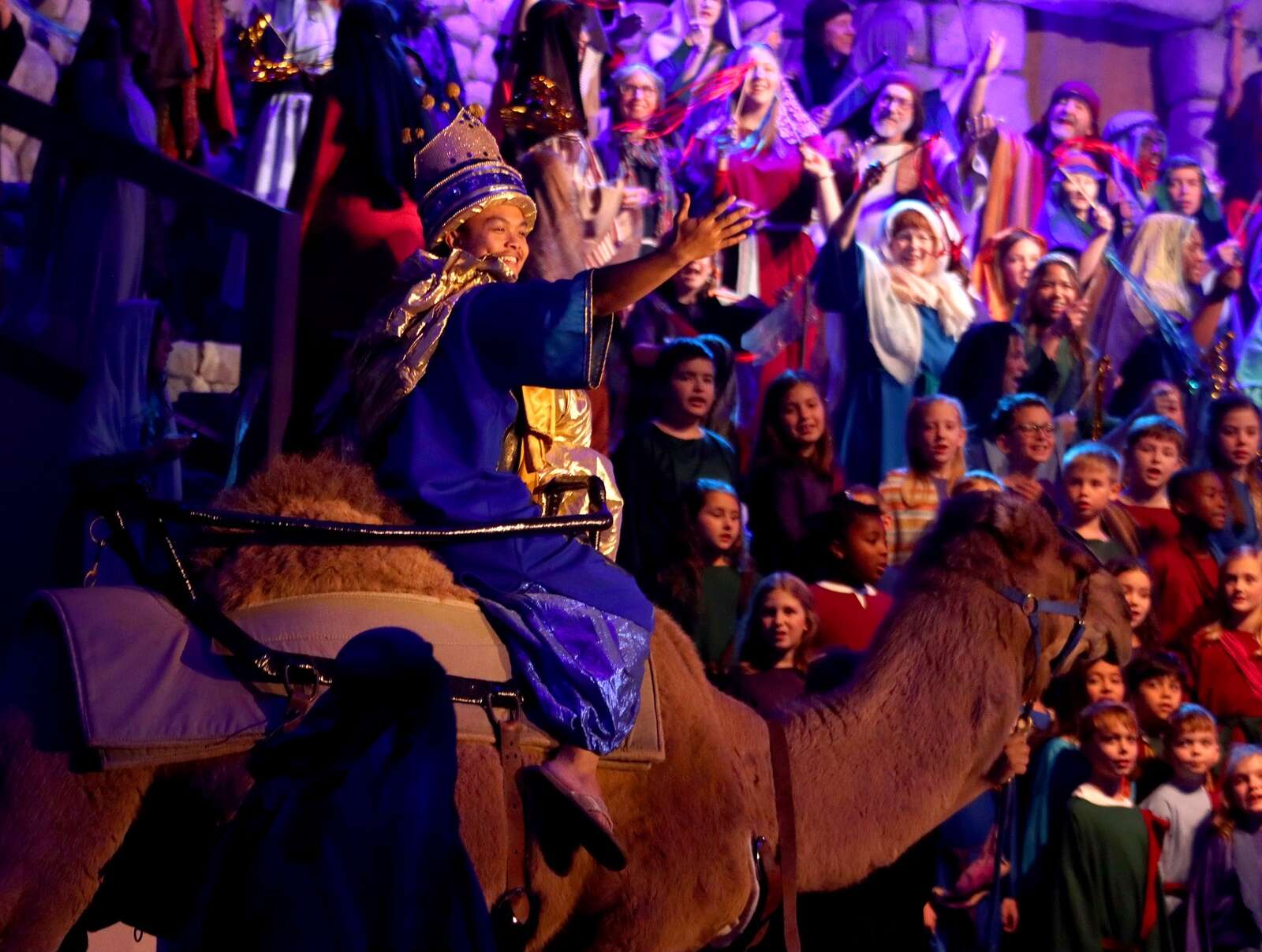 The show featured dozens of performers of all ages and live animals. The story is about the birth of Jesus as observed by a shepherd.