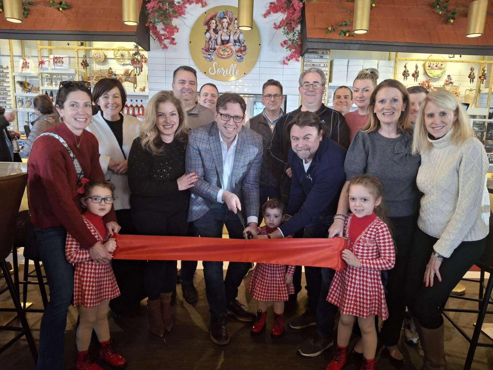 Officials and members of the Glenview Chamber of Commerce welcome Sorelle Italian restaurant to the community at 1941 Tower Drive.