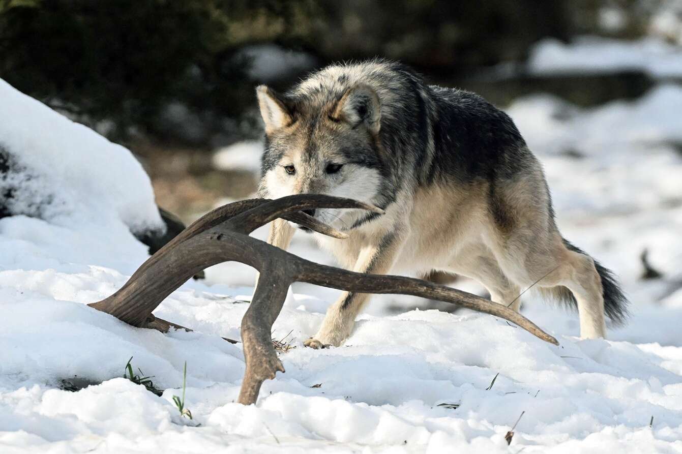 In Regenstein Wolf Woods, a pack of male Mexican wolves received olfactory-focused enrichment, sniffing for elk antlers donated by the Forest Preserves of Cook County after a recent antler removal for safety purposes. These brothers may be new to some guests to see as they have just recently begun rotating on habitat.