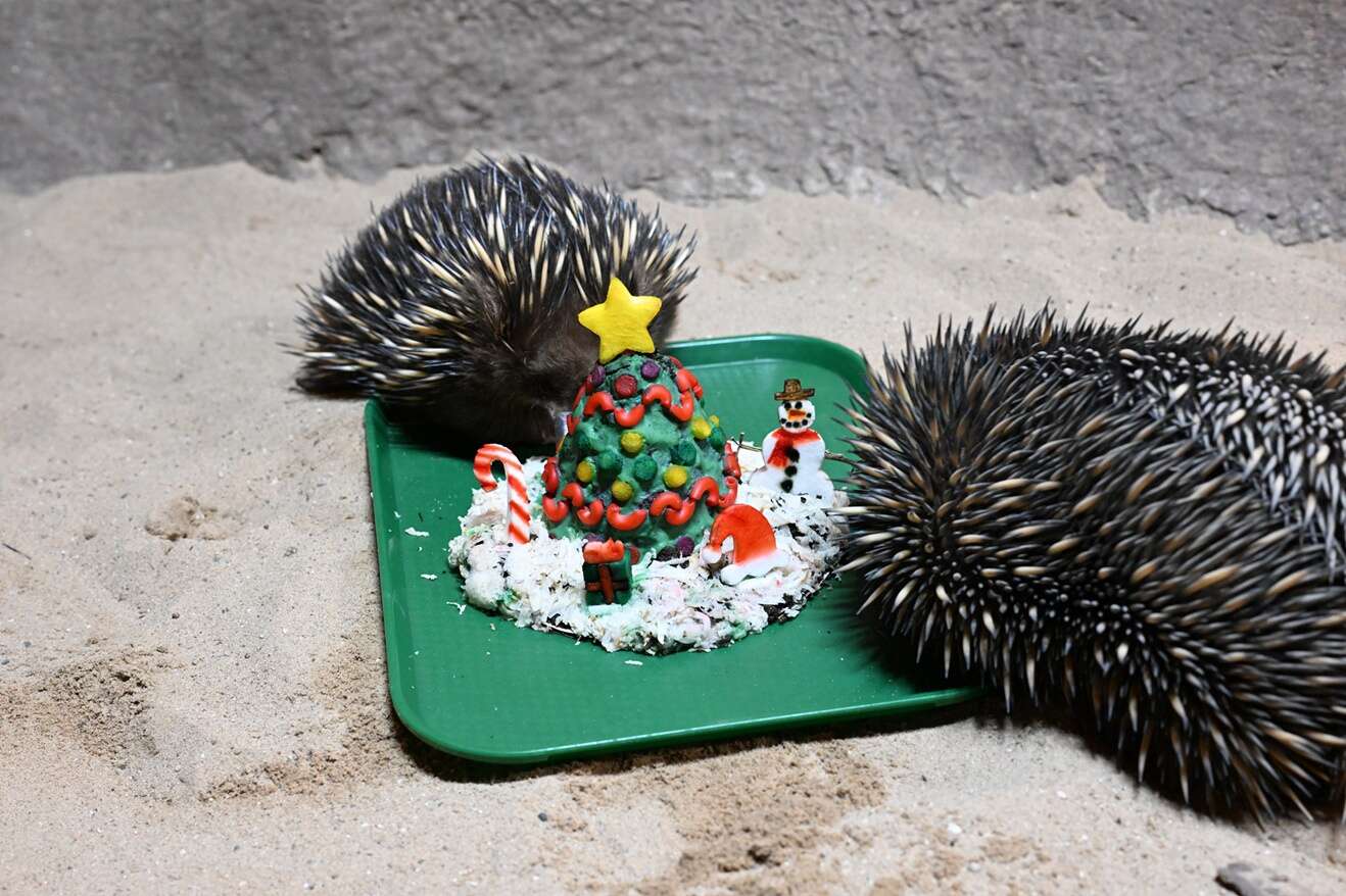 In the Australia House, the short-beaked echidnas decked the halls with a “tree-mendous” treat topped with a star! The native Australian mammal explored and feasted on the unflavored gelatin-based enrichment, which supports natural curiosity and foraging behaviors.