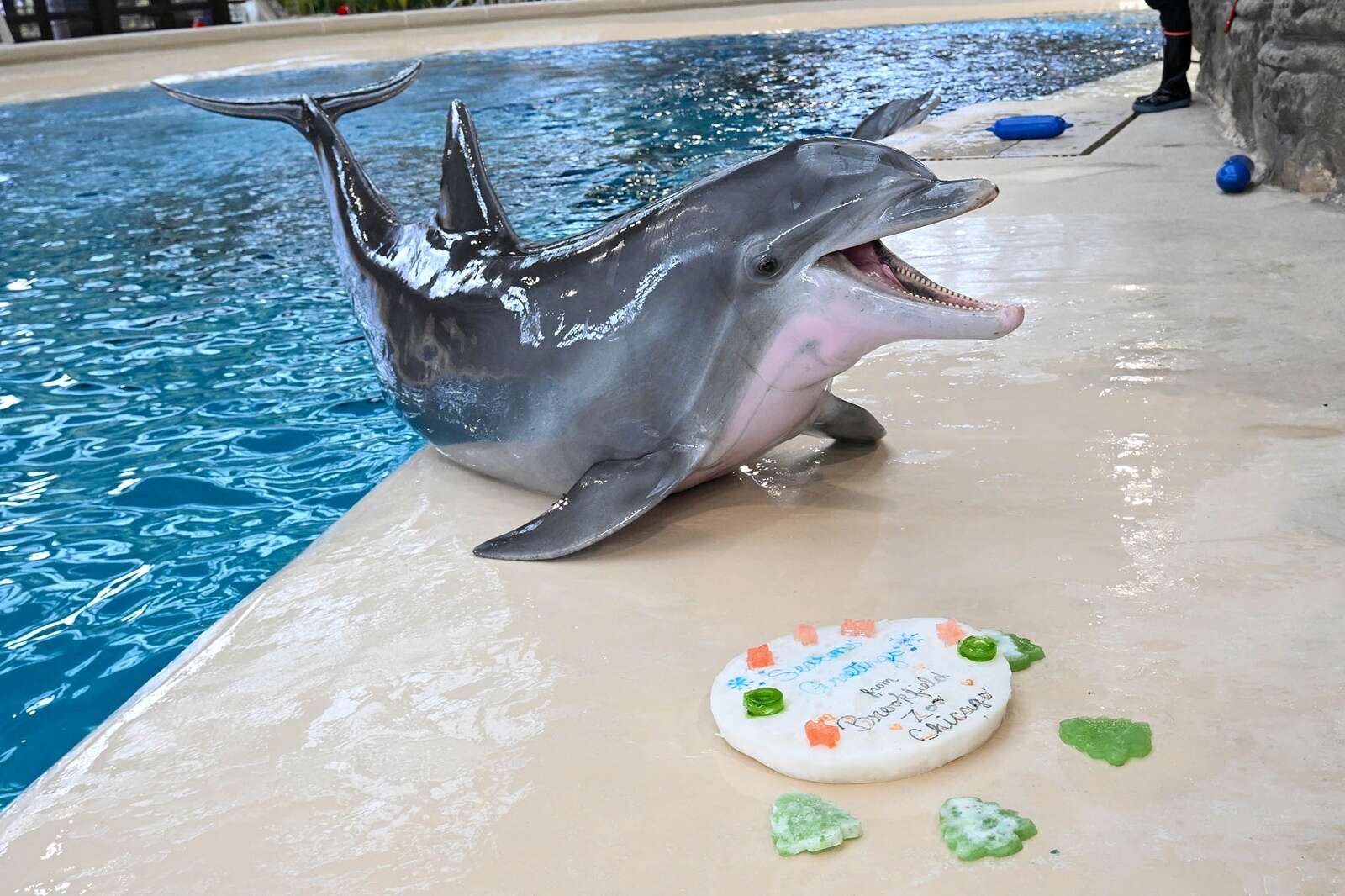 At Dolphin Discovery, the bottlenose dolphins made a splash this holiday season with a snowman made of frozen, unflavored gelatin and ice along with other holiday-inspired treats that aid hydration and spark cognitive engagement.