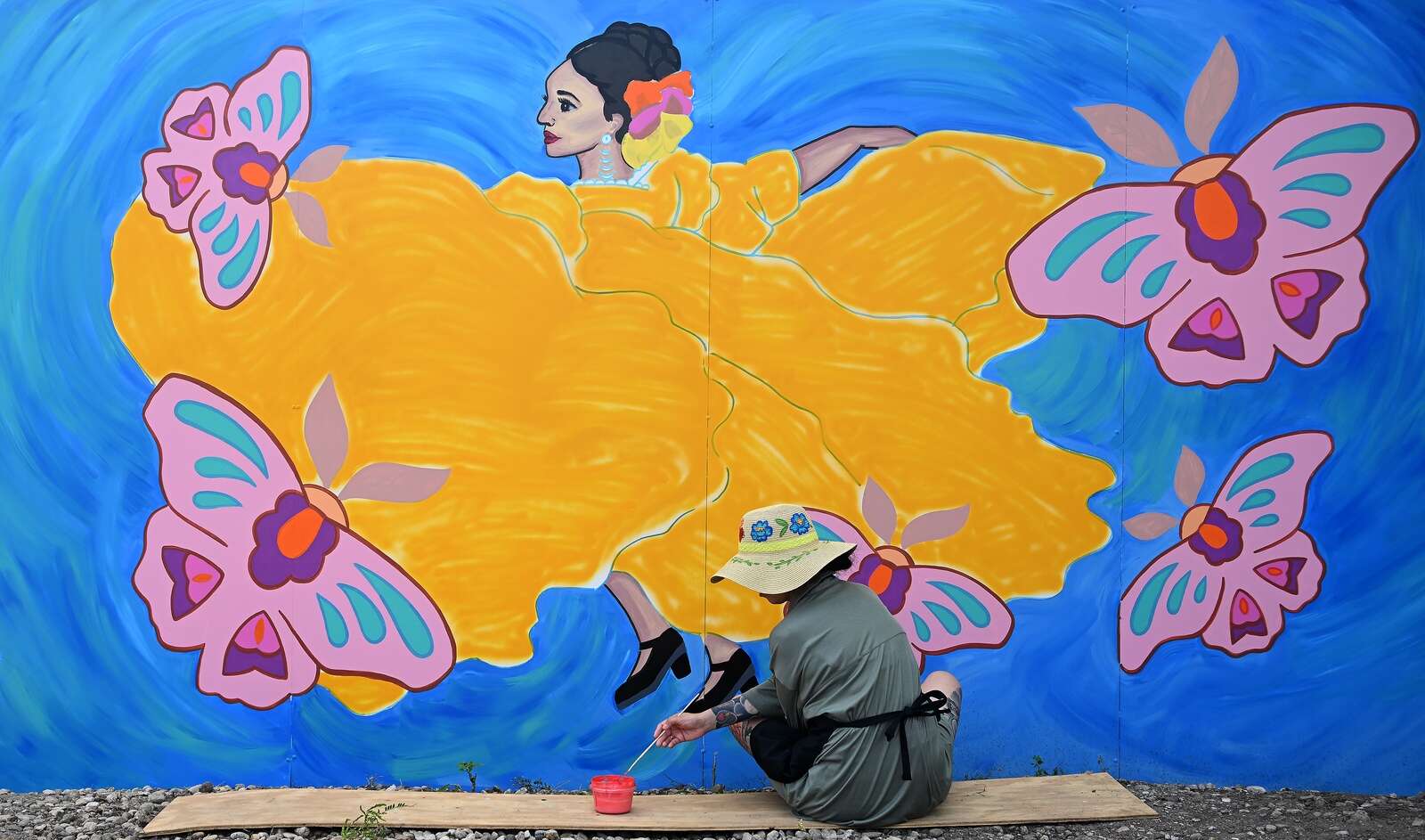 Cristina Colunga of Elgin works on her section of a collaborative mural in East Dundee.