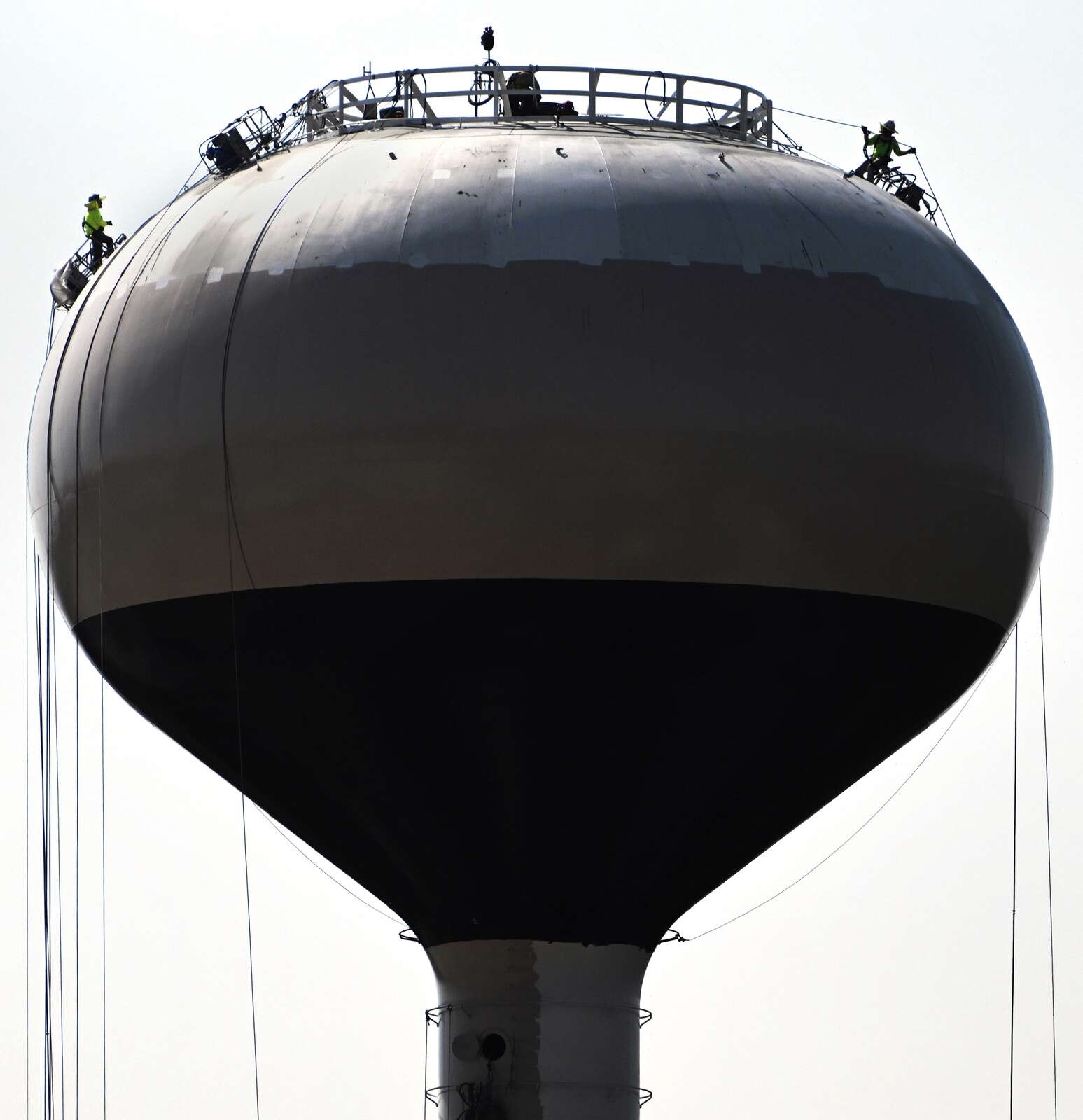 Crews work on a water tower painting project on Thursday, Sept. 18, 2025 in West Dundee, Ill. The words Spring Hill Mall were removed from the tank as the nearby mall is being demolished to make way for future development.