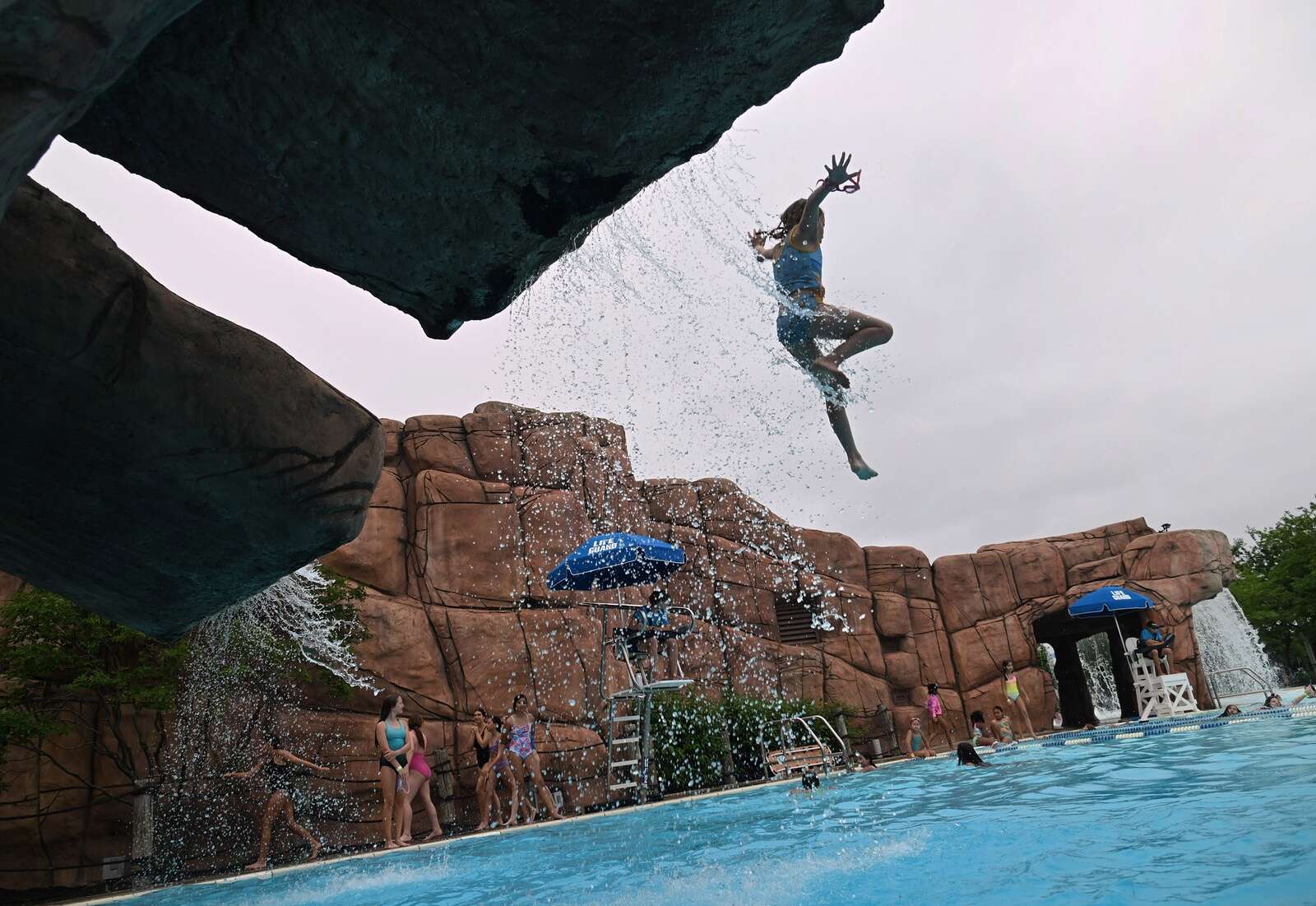Kids from a summer camp enjoy the drop slides on Thursday, July 17, 2025 at the Wheeling Park District's Family Aquatic Center in Wheeling, Ill. The park district is hoping to approve a multi-million dollar update to the center and will most likely close down and replace the drop slides.