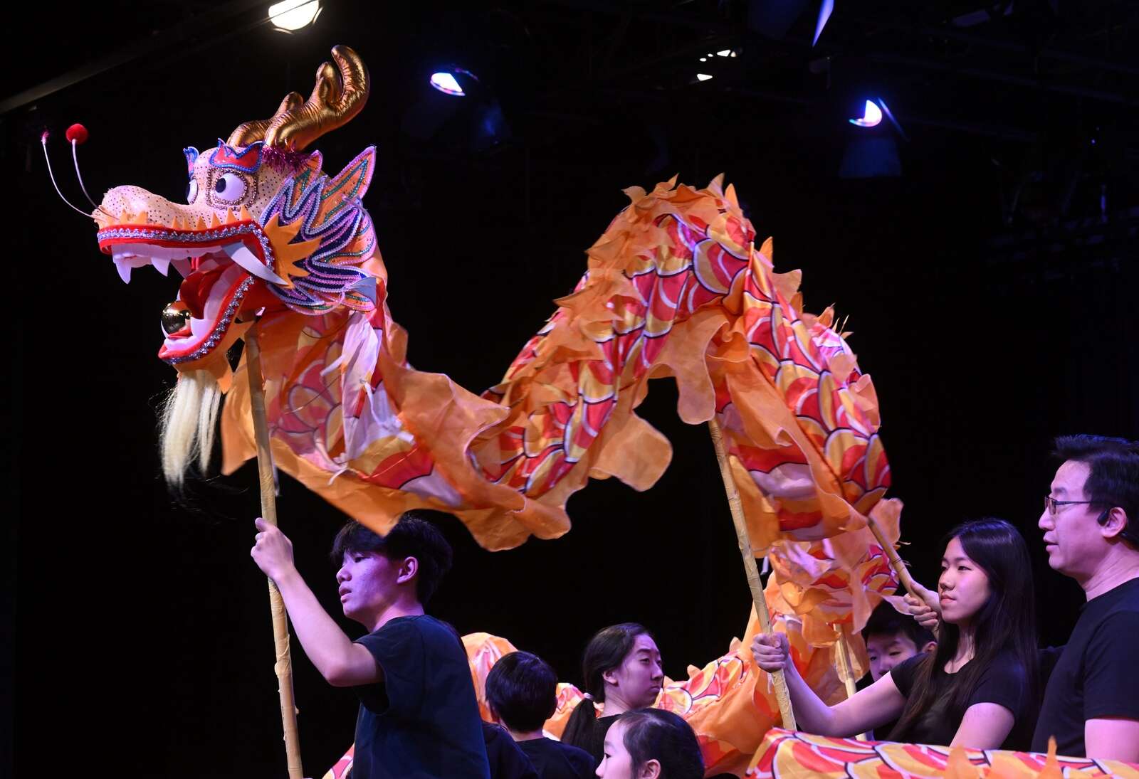 Members of the Stevenson High School Family perform a dragon dance during the Buffalo Grove Park District’s Lunar New Year celebration at the Community Arts Center on Saturday, Jan. 18, 2025 in Buffalo Grove.