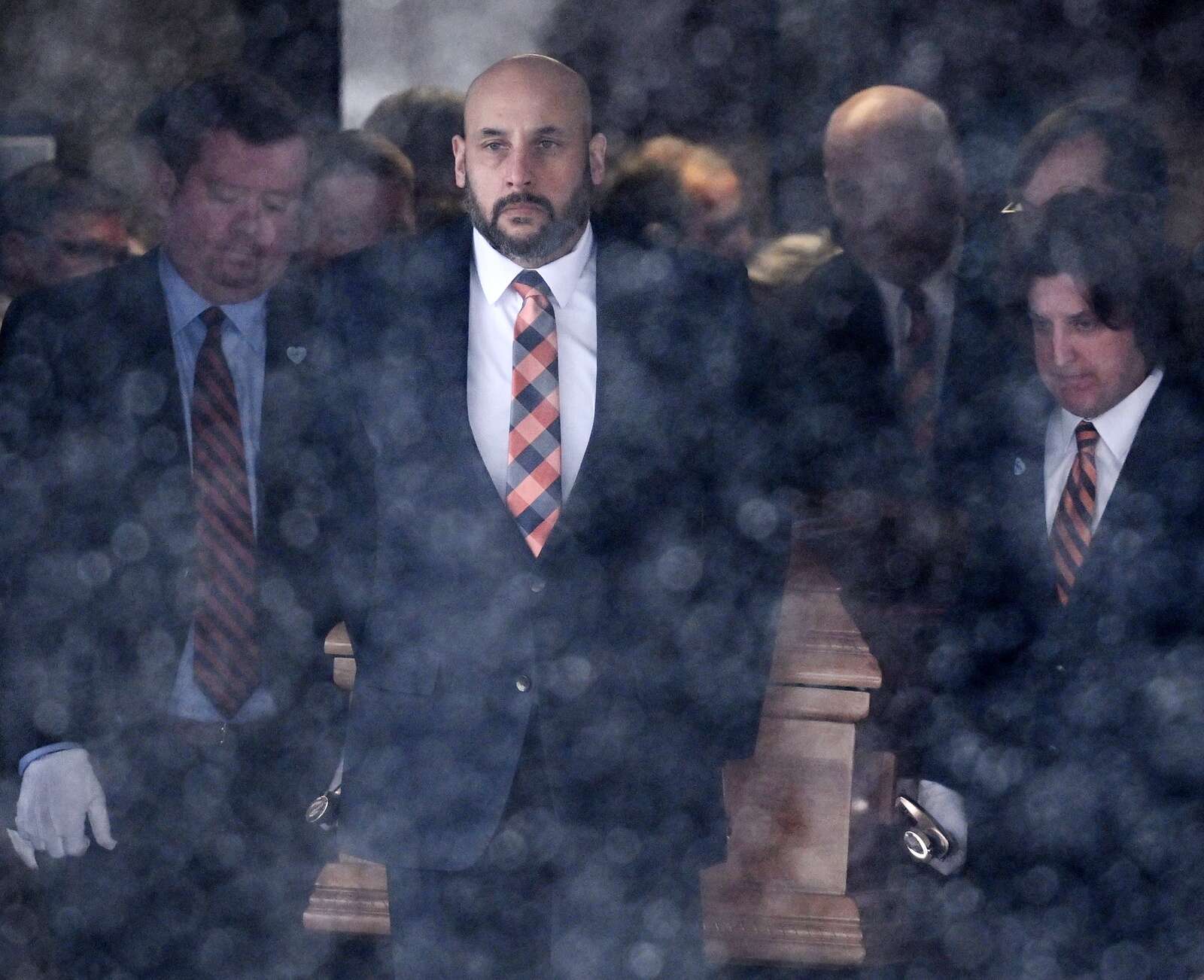 Pallbearers carry the casket from the church during the funeral for Chicago Bears owner Virginia McCaskey at St. Emily Catholic Church on Wednesday, Feb. 12, 2025 in Mount Prospect.