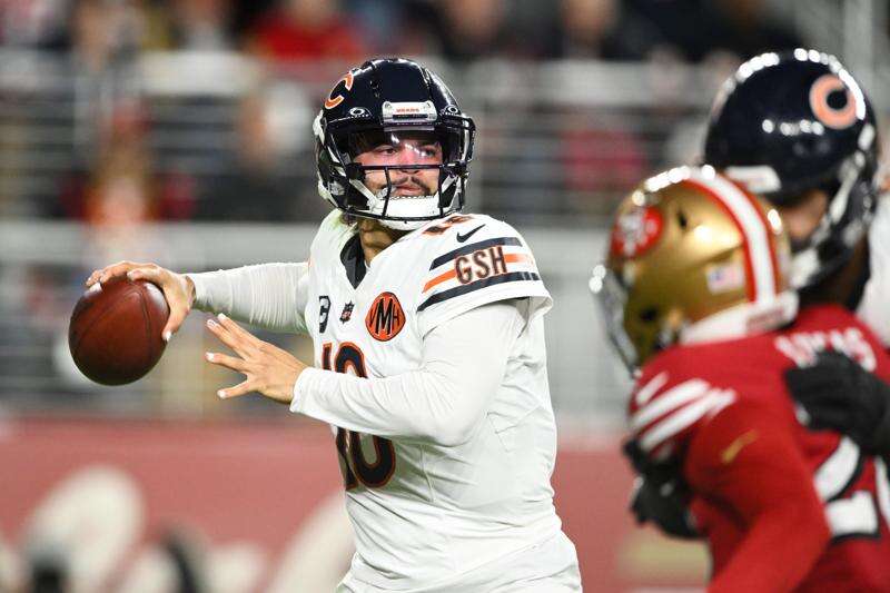 The teams then traded touchdowns on the first three drives of the second half, with D’Andre Swift scoring on two runs for Chicago and Purdy delivering a highlight-reel play for San Francisco. He rolled to his right on a play from the 6, eluded two pass rushers and then flipped an easy TD pass to Kyle Juszczyk on a play that lasted longer than 8 seconds.