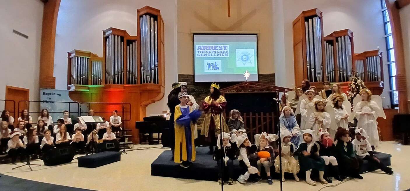Living Lord Lutheran Church in Bartlett celebrated its 35th annual Christmas pageant on Sunday, Dec. 14. The production’s intergenerational cast of nearly 70 people performed “Arrest These Merry Gentlemen!” for a packed audience in the church’s sanctuary, followed by a festive reception.