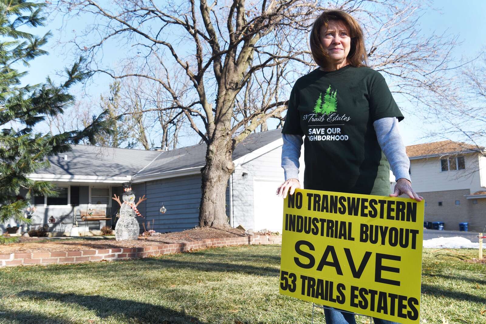 Lisa Hinton, who, along with her husband Jim, are residents of an unincorporated neighborhood—53 Trails Estates (located east of Route 53, south of Army Trail Road, and west of Lombard Road)— who are resisting an effort by an industrial developer to buy their homes. According to residents, the developer wants to demolish the neighborhood to make way for an industrial site.