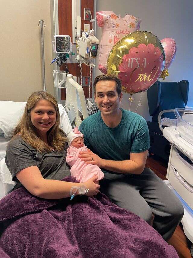 Olivia and Jeff Messing of Libertyville welcomed their daughter Maisy Grace just before 5 a.m. Thursday where she was the first baby born at Northwestern Medicine Catherine Gratz Griffin Lake Forest Hospital in 2026. Courtesy of Northwestern Medicine Catherine Gratz Griffin Lake Forest Hospital