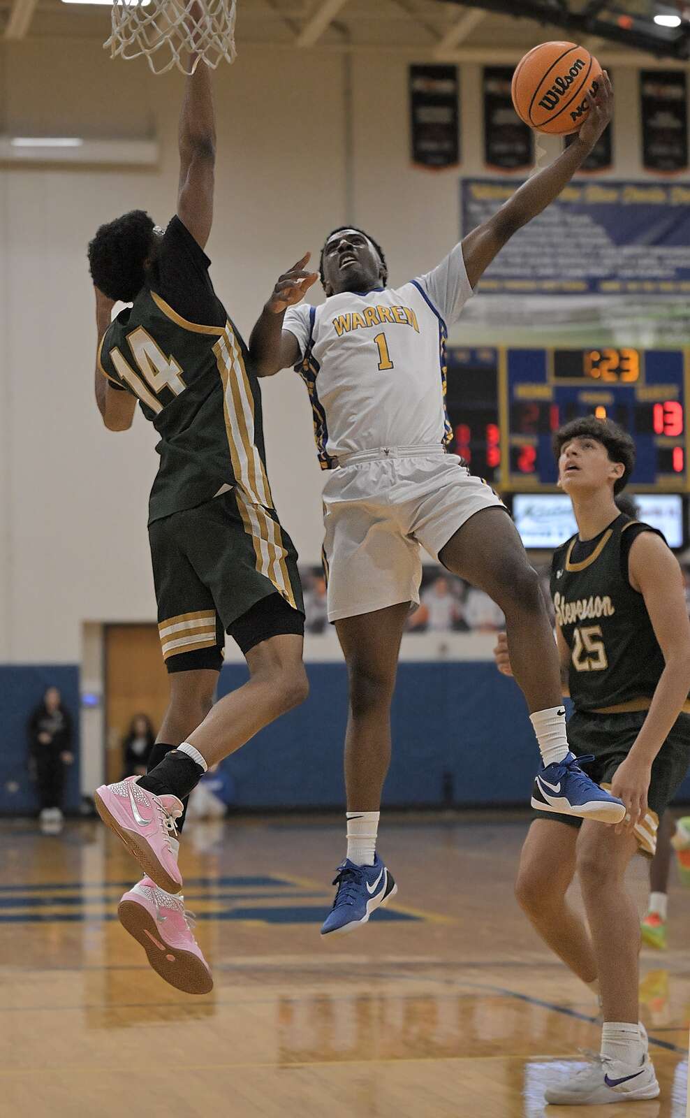 That shot had the gym buzzing, but Warren (13-1, 4-0) put the game out of reach rather early in this one. The Blue Devils raced out to a double digit first quarter lead on the strength of 12 first quarter points from Davis.