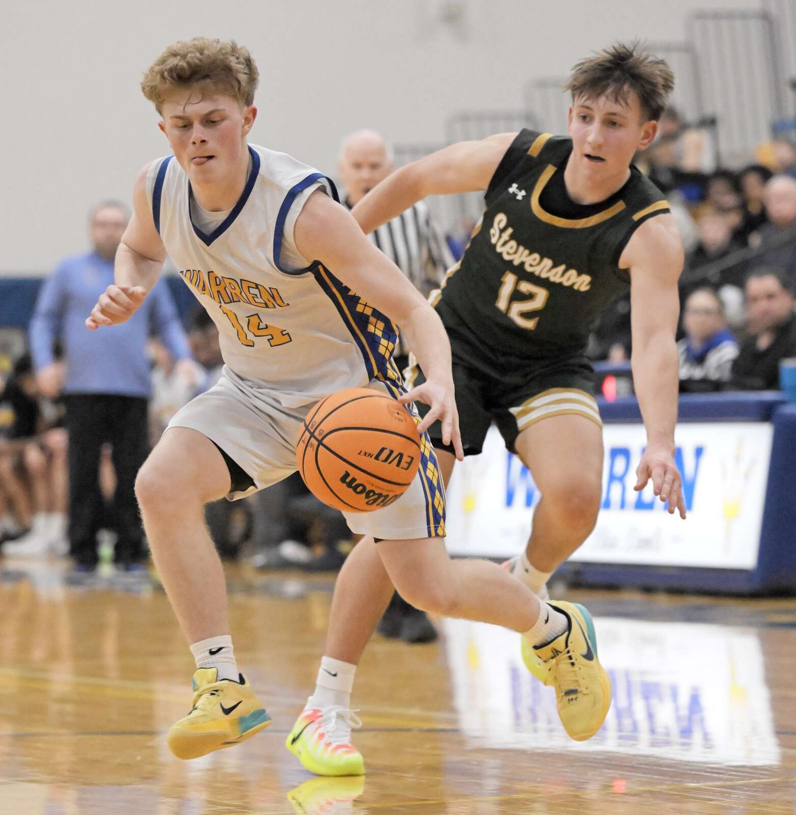 Jaxson Davis, 2025 Illinois Mr. Basketball, scored 36 points, including a halftime buzzer beater from the logo and his first dunk on his home court, as Warren defeated Stevenson 85-46 with Blue Devil-alum and 2009 Illinois Mr. Basketball, Brandon Paul, in attendance, on Friday night in Gurnee.