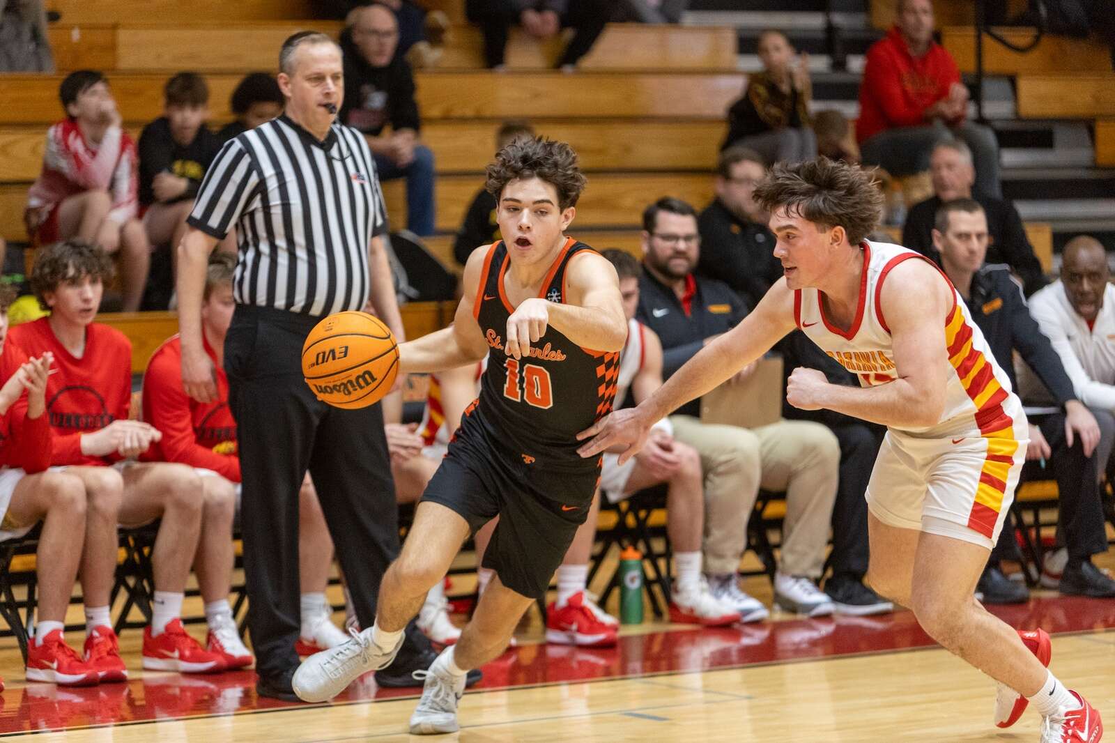 St. Charles East ended up outscoring Batavia in the second half 25-20 in the contest. Senior Peyton Feidley led the Saints in scoring with 14 points, including nine in the second half. Senior Reese Dumpit added 10 and Gavin Belli had nine more.