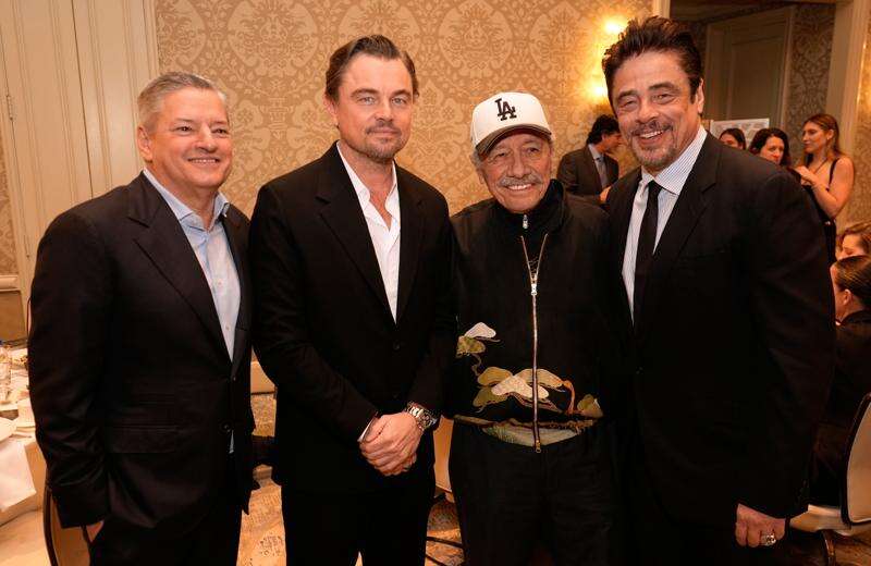 Nearby, DiCaprio stood side by side with Netflix co-CEO Ted Sarandos and actors Benicio Del Toro and Edward James Olmos. Chase Infiniti looked on from her table, gazing toward her “One Battle After Another” co-stars before the program kicked off.