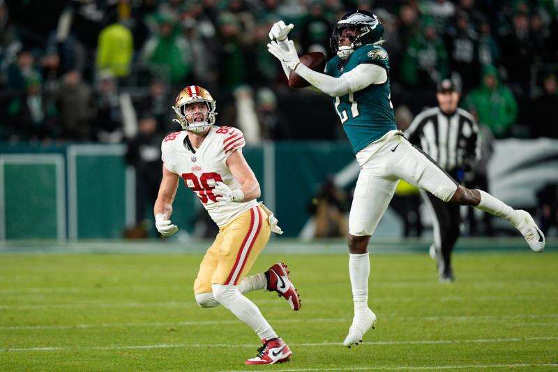 The Eagles — who won a Super Bowl on a trick play — were foiled by one when Jennings was pitched the ball and rolled right and hit McCaffrey on a 29-yard touchdown. The score on the first play of the fourth quarter gave the 49ers a 17-16 lead.