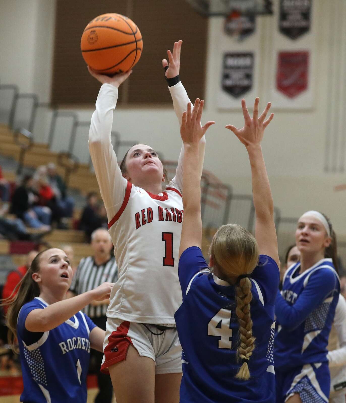 Burlington Central kept pace with the Raiders in the first half, where junior forward Julia Scheuer put home a trio of layups in transition and led the Rockets on the boards. Scheuer finished with a team-high 15 points and eight rebounds for Central, which trailed 15-12 after one quarter and saw LaFleur drain a 3-pointer from the corner, her first of the game, late in the second quarter.