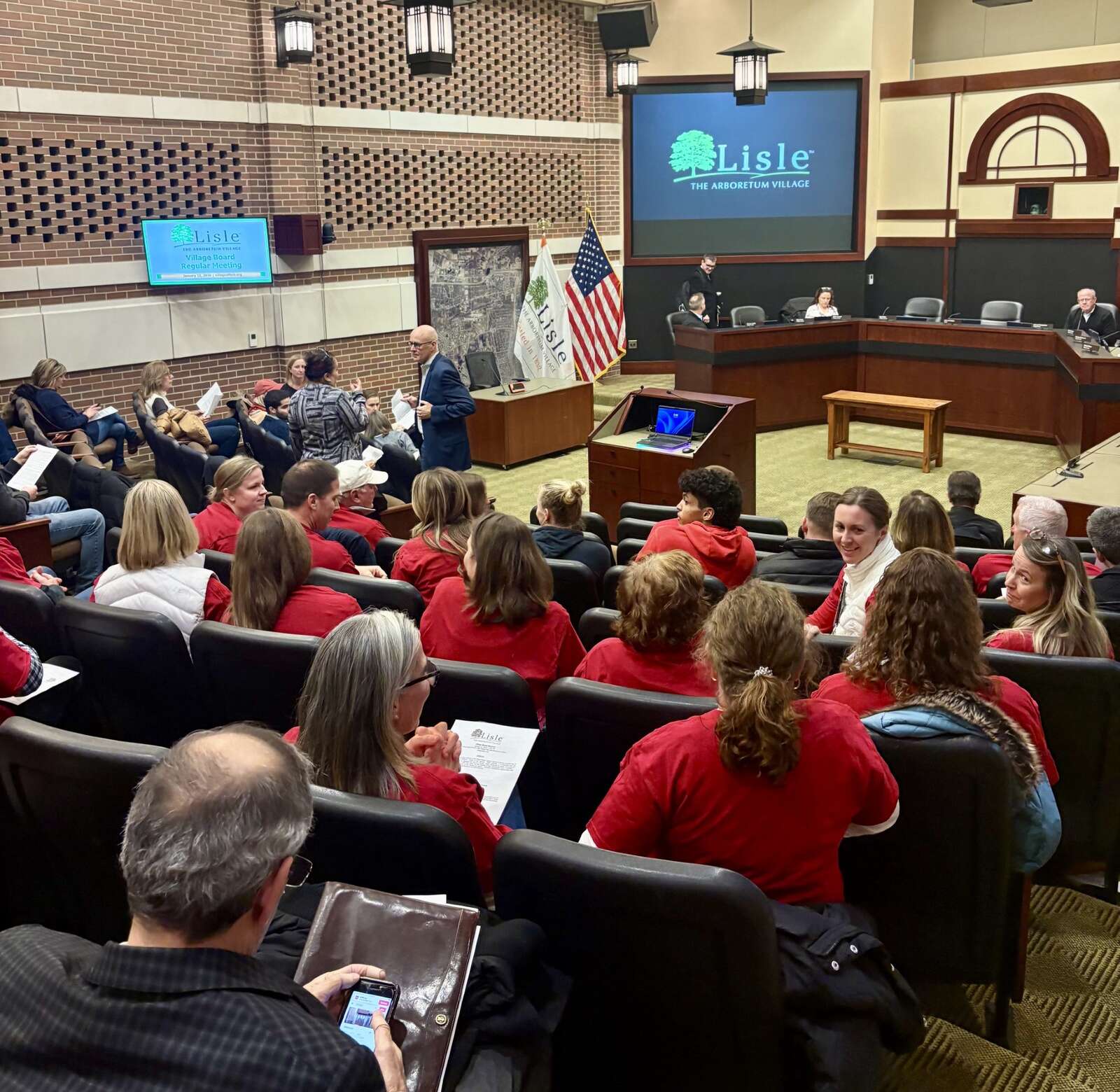 Benet Academy's proposal for a major upgrade of its stadium and athletic grounds drew a large crowd to Monday’s Lisle Village Board meeting. Courtesy of Benet Academy