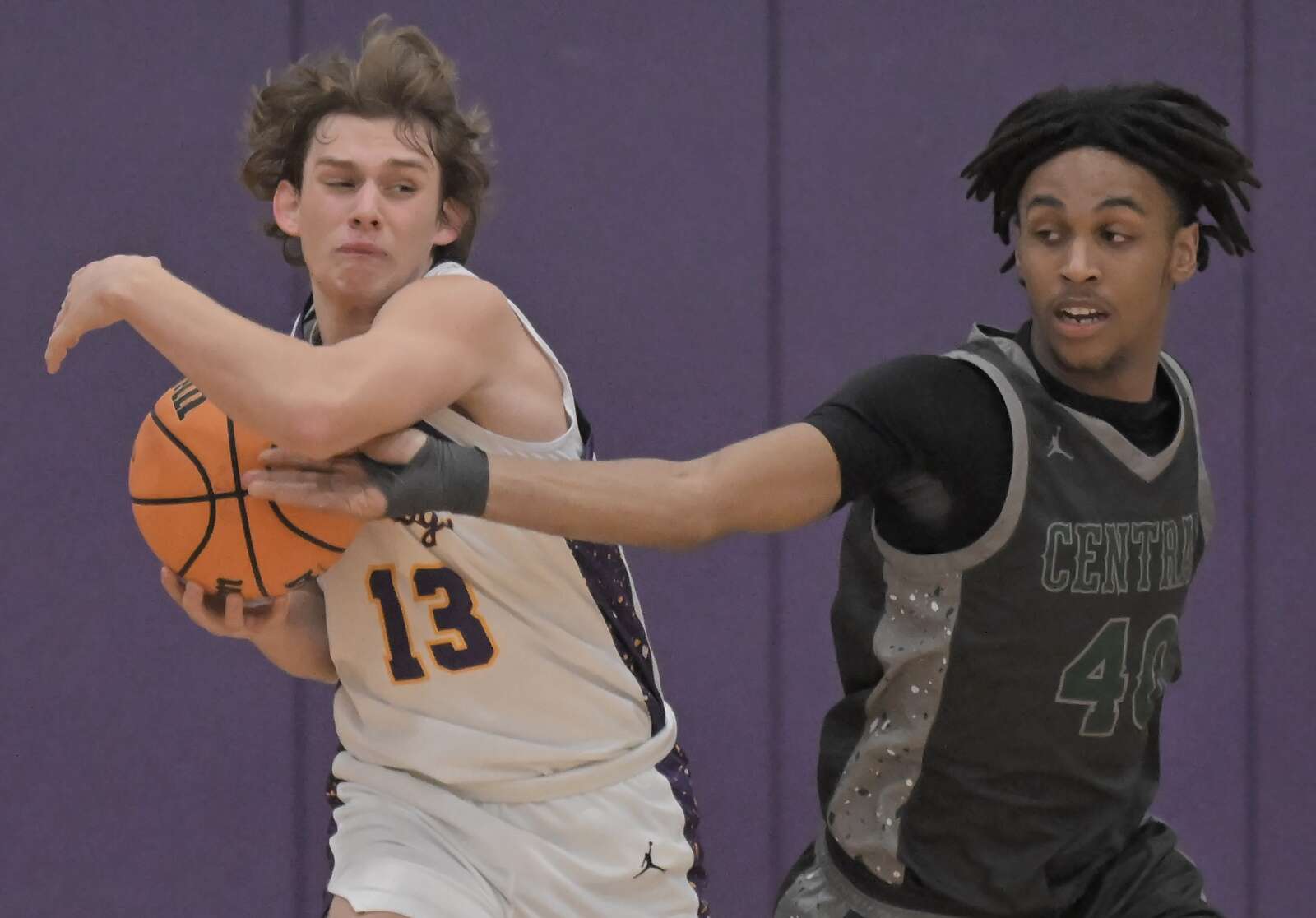 Wauconda’s Cole Plucinski protects the ball afrom Grayslake Central’s Verton Freeman in a boys basketball game in Wauconda on Wednesday, Jan. 14, 2025. John Starks/jstarks@dailyherald.com