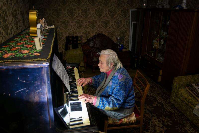 Her neighbor, 89-year-old physicist Raisa Derhachova, lives alone and sometimes plays the piano in what she calls “this terrifying cold.”