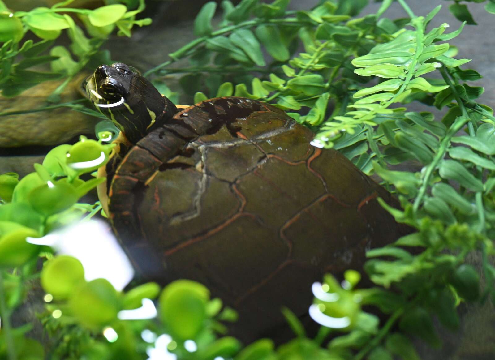 A painted turtle swims in its enclosure at the DuPage Wildlife Conservation Center in Glen Ellyn. Generally, their shell fractures are from being hit by cars. Joe Lewnard/jlewnard@dailyherald.com