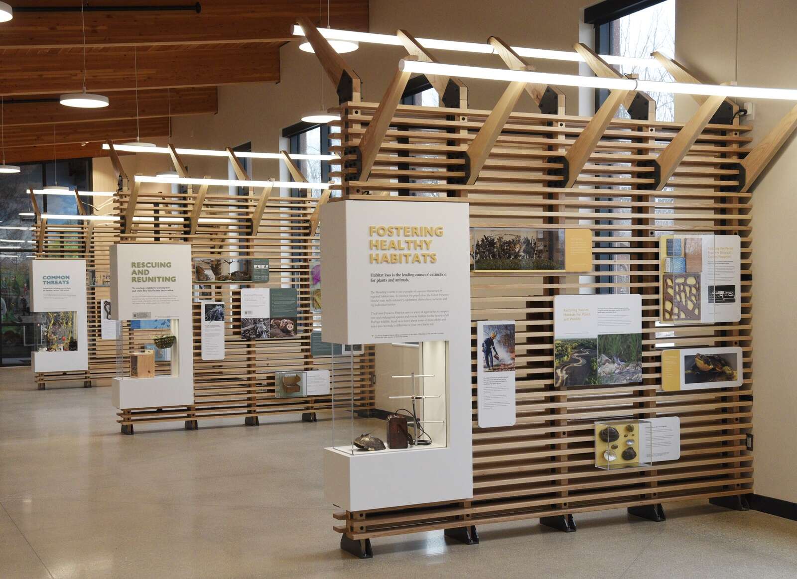 Educational displays are in the front of the newly unveiled visitor center exhibit hall at the DuPage Wildlife Conservation Center in Glen Ellyn. Joe Lewnard/jlewnard@dailyherald.com