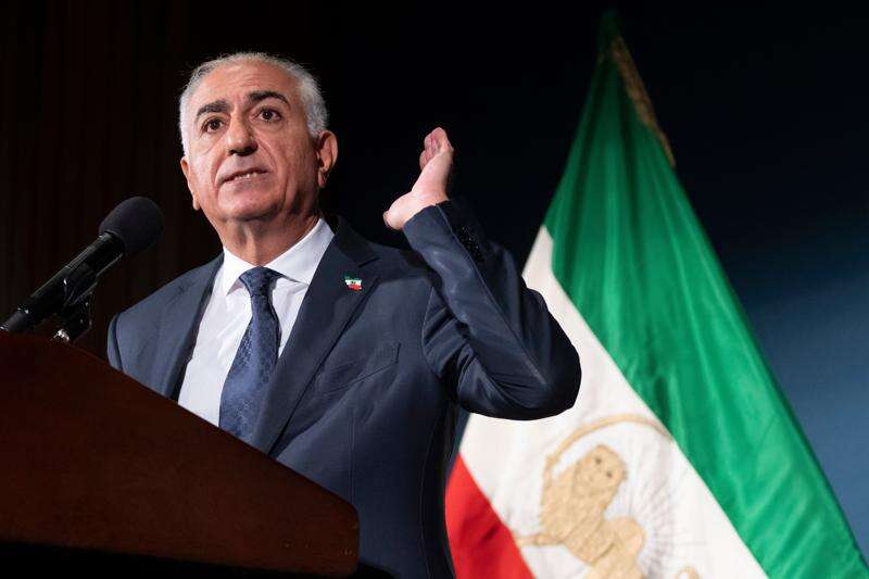 Iranian opposition leader Reza Pahlavi speaks Friday during a news conference in Washington. AP Photo/Mark Schiefelbein