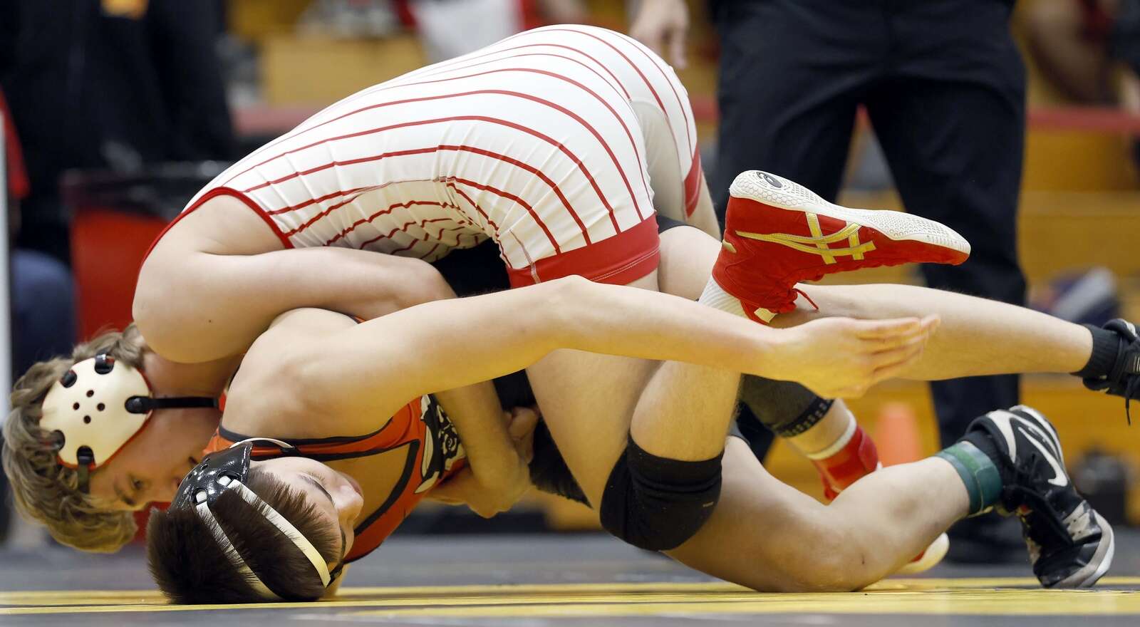 For the second straight season, Enos won a title at his school’s home tournament, beating Rockton Hononegah’s Kristian DeClercq 9-5 at 120 pounds.