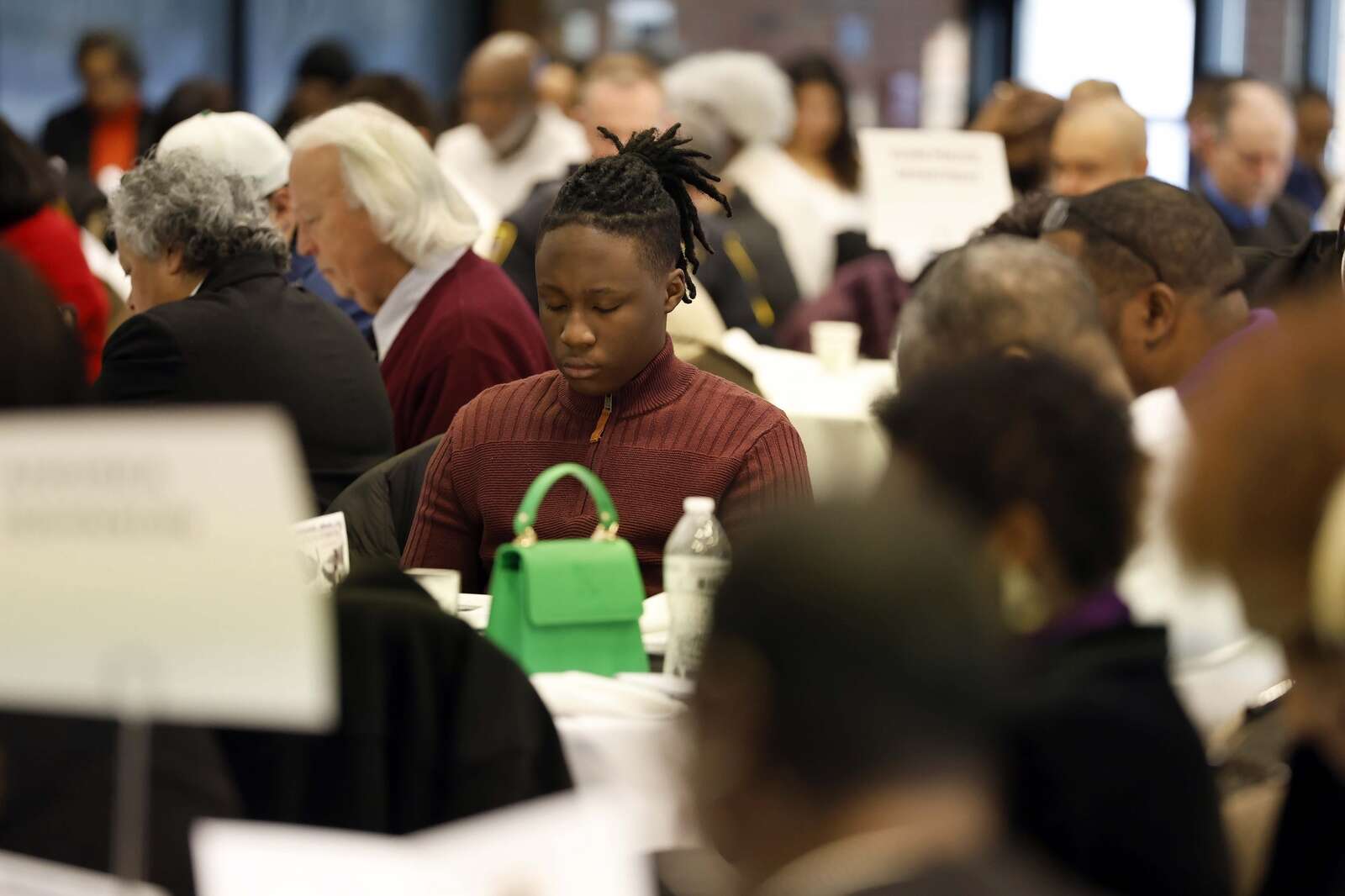 The group pauses in prayer during the 41st Annual Dr. Martin Luther King Jr. Prayer Breakfast Saturday at Elgin Community College in Elgin.