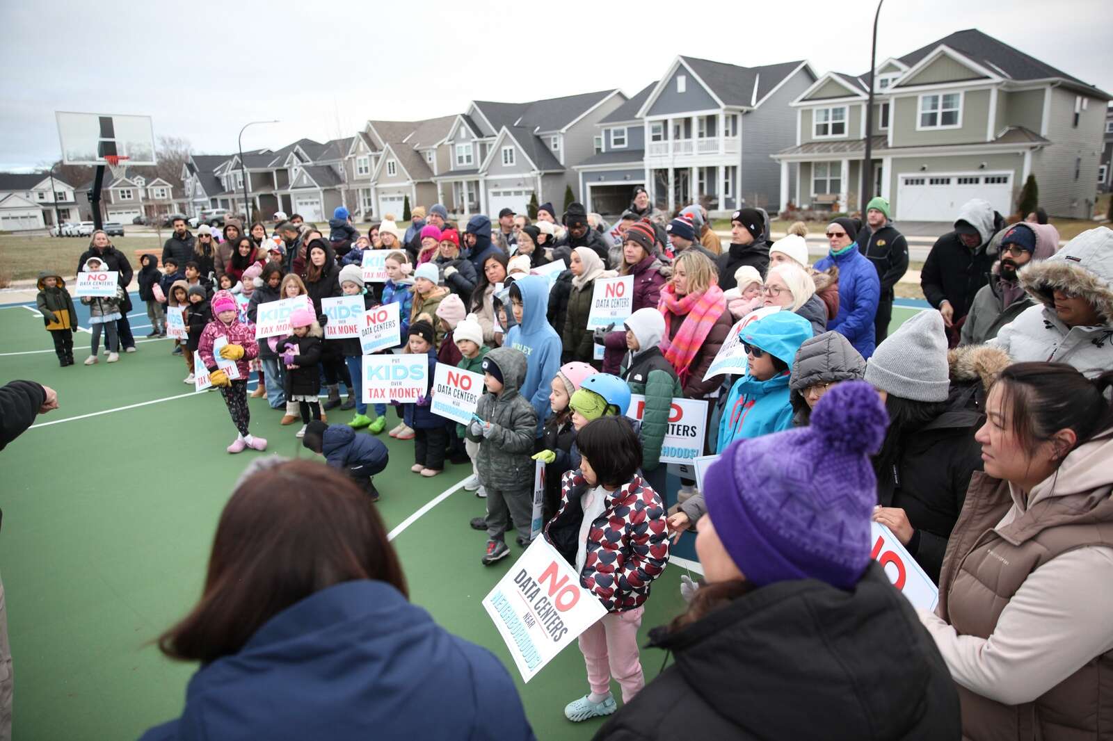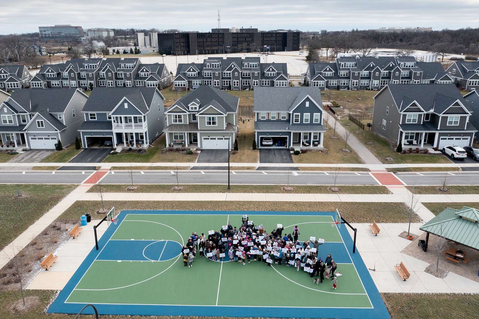 Neighbors of the proposed Naperville data center gather to show their opposition to the project. Courtesy of Protect Naperville