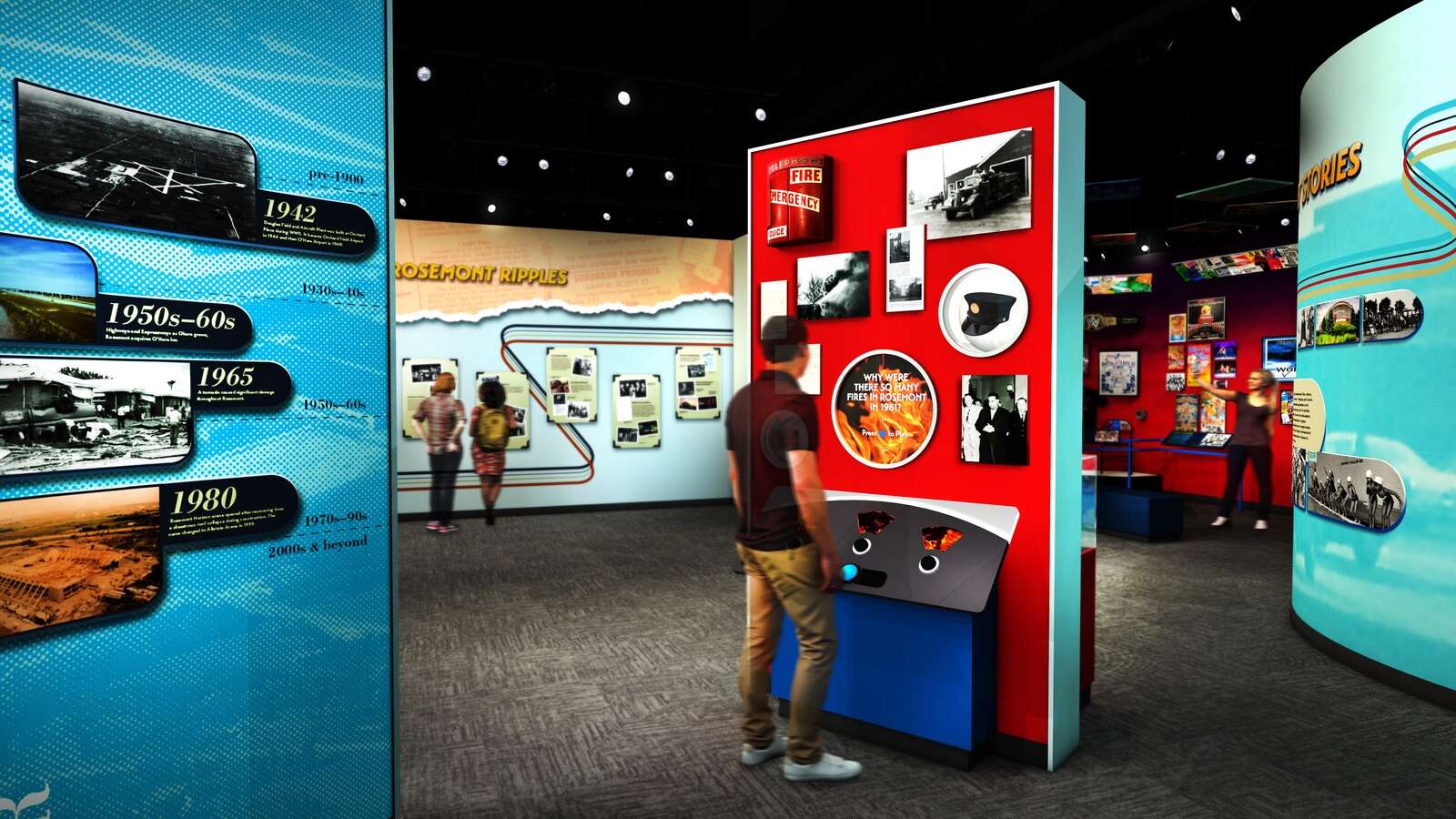 Interactive learning hubs with photos and mementos will be part of Rosemont’s history museum. Courtesy Village of Rosement