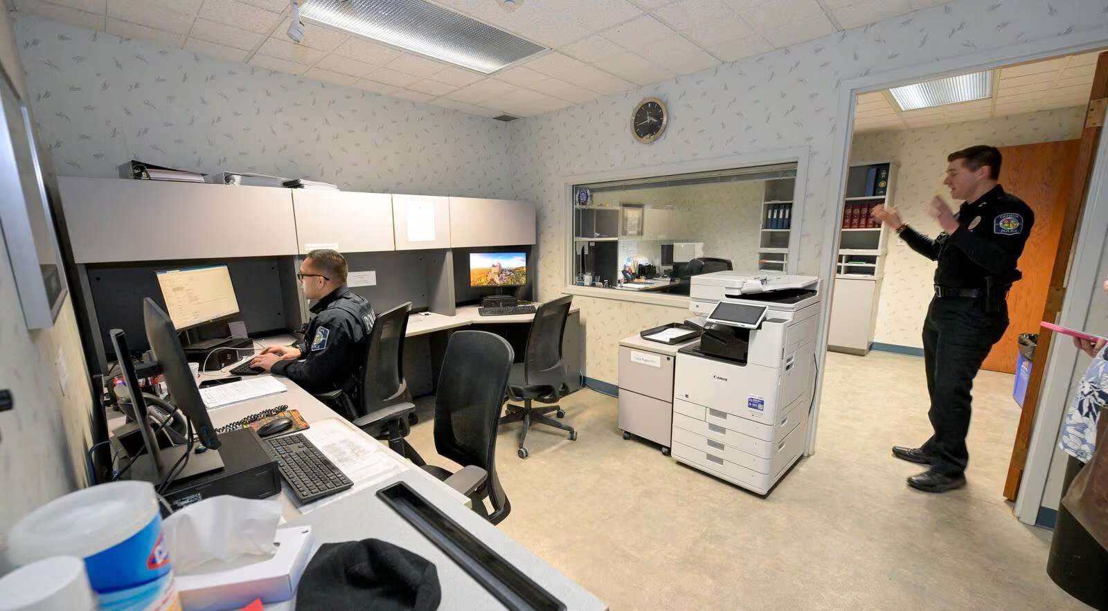 It revealed a rabbit warren of spaces police and staff navigate to get things done: down one hall for the social worker, down another for the roll call room, turn left or right or go straight and everything eventually leads to offices, storage, small holding cells, areas for evidence, electronics, garages — even filing cabinets are lined up in some hallways from lack of space elsewhere.