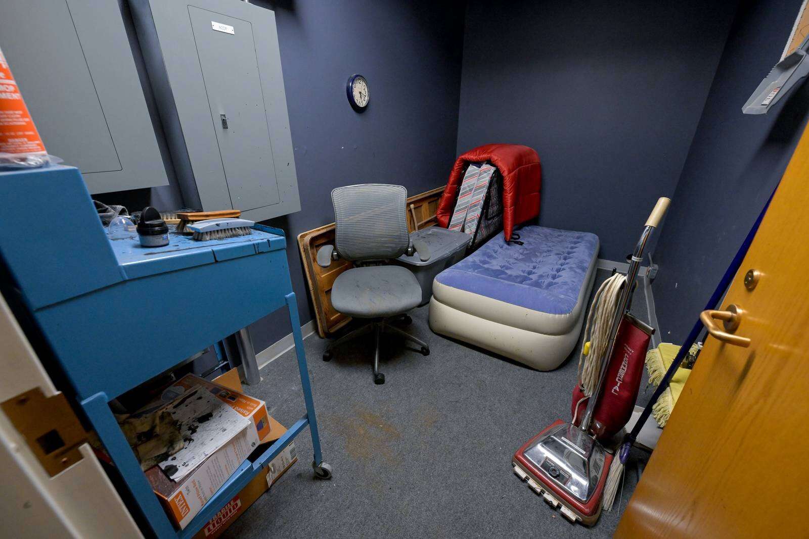 The tour also revealed damaged areas from aging pipes that leak, sewer backups, crowded workspaces, paper-thin walls and evidence that every possible make-do was done.