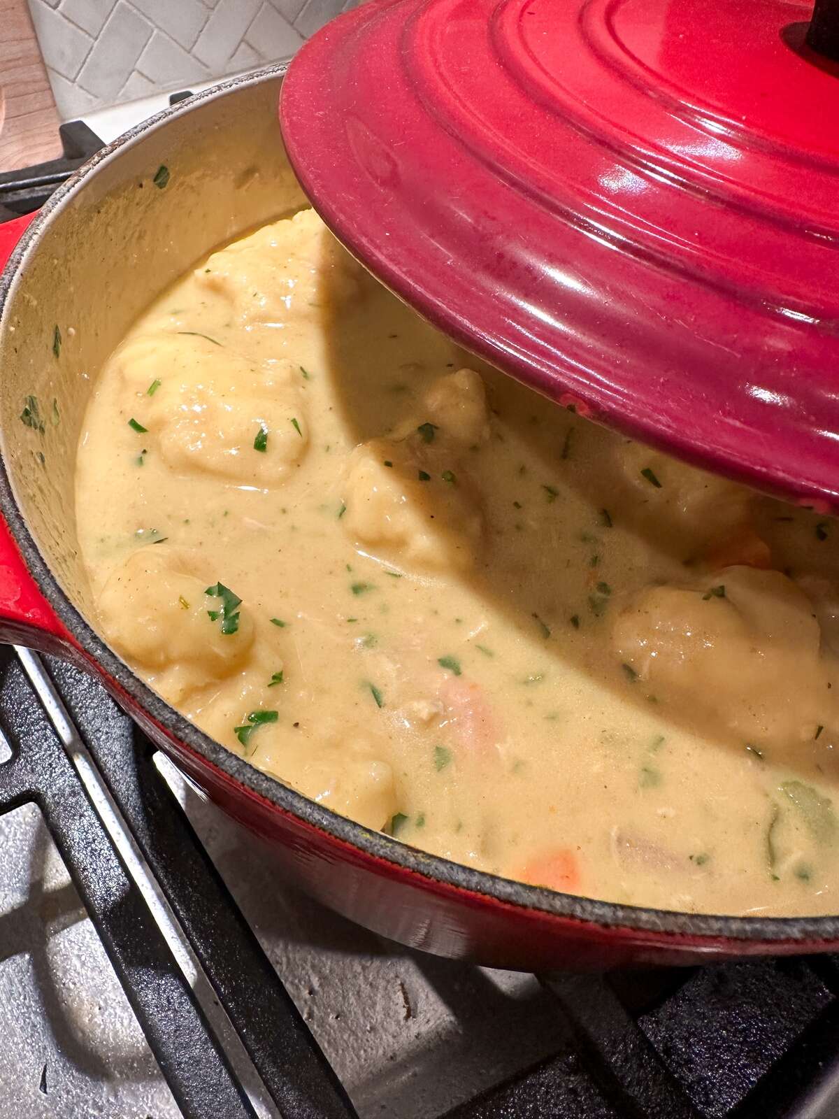 I’ve always loved how adaptable chicken and dumplings can be, and adding a touch of yellow curry felt like a natural evolution. The curry isn’t meant to dominate the dish, it simply adds warmth and depth, enhancing the savory richness of the broth and vegetables. Think familiar comfort food with just a little extra personality.