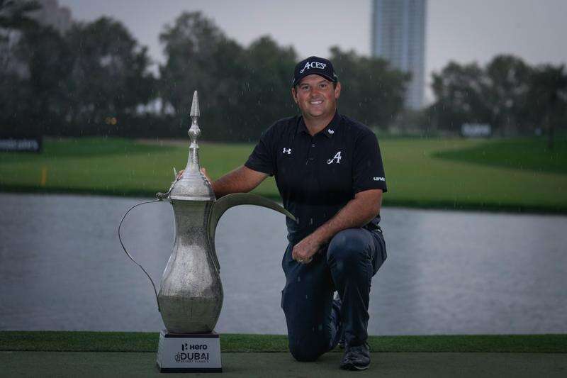 Winner Patrick Reed of the United States poses with the Dubai Desert Classic in United Arab Emirates, Sunday, Jan. 25, 2026. (AP Photo/Altaf Qadri) (AP Photo/Altaf Qadri)