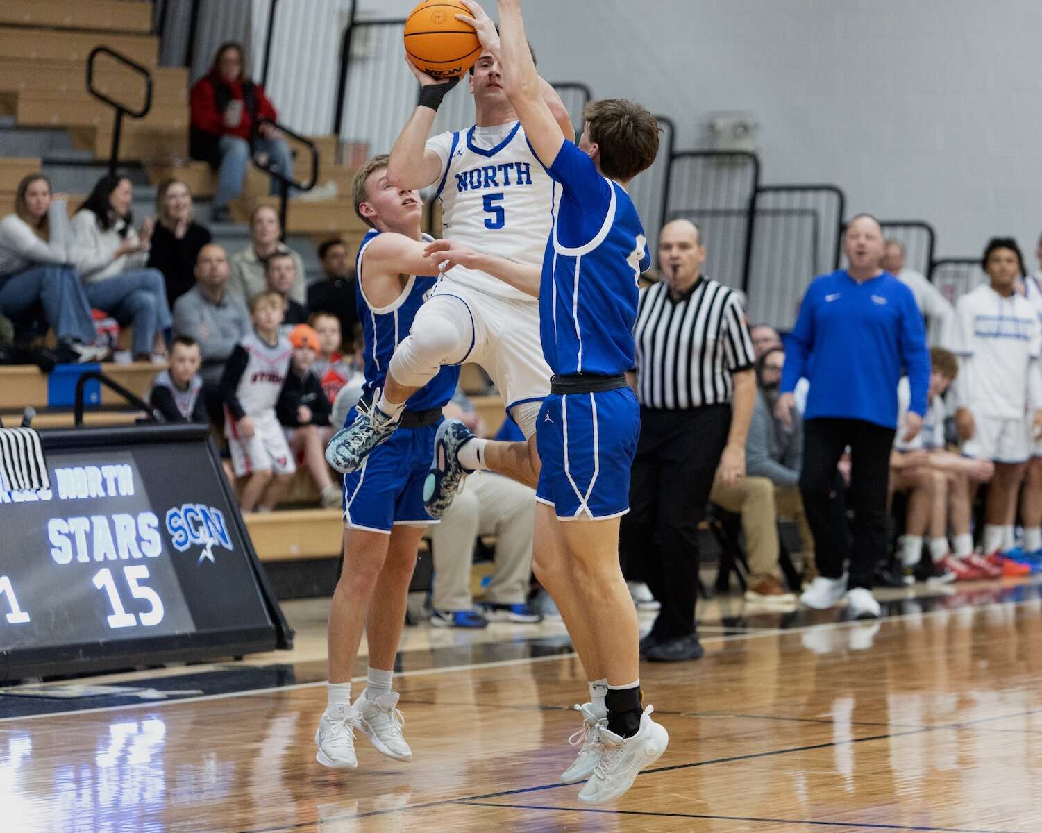 Senior Cooper Mellican led the charge for the North Stars with 21 points, with 10 of them coming in the first quarter, including his buzzer-beating shot that tied the game at 17-17.