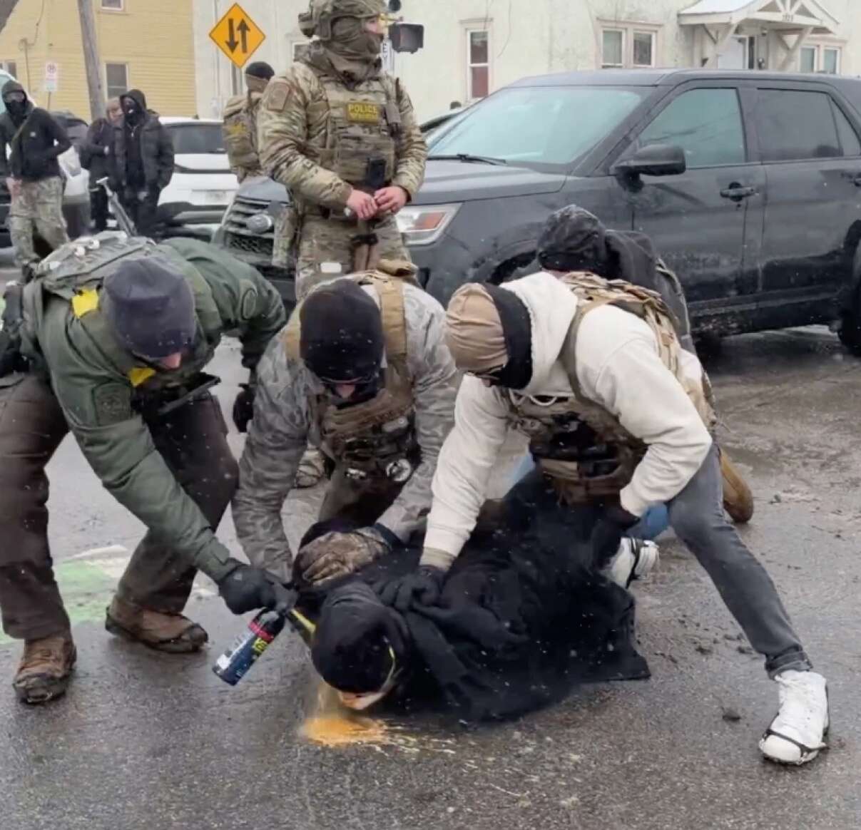 Ben Luhmann recorded a federal immigration agent spraying chemical agents at protesters in Minneapolis on Jan. 21. Courtesy of Ben and Sam Luhmann