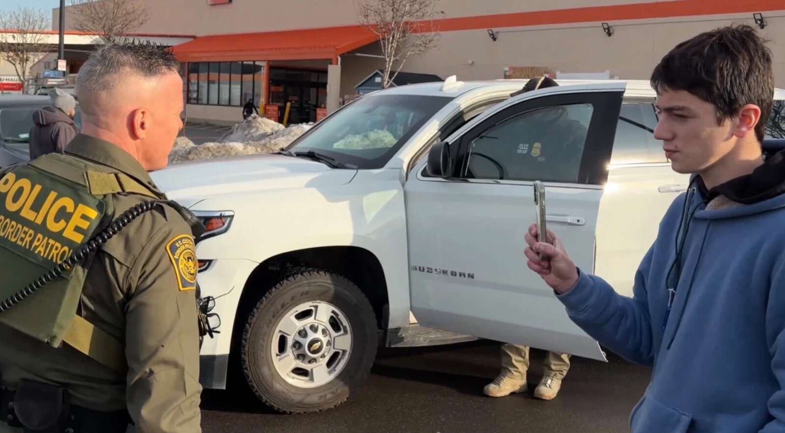 Sam Luhmann records U.S. Border Patrol Cmdr. Gregory Bovino in Evanston on Dec. 17, 2025. Courtesy of Ben and Sam Luhmann