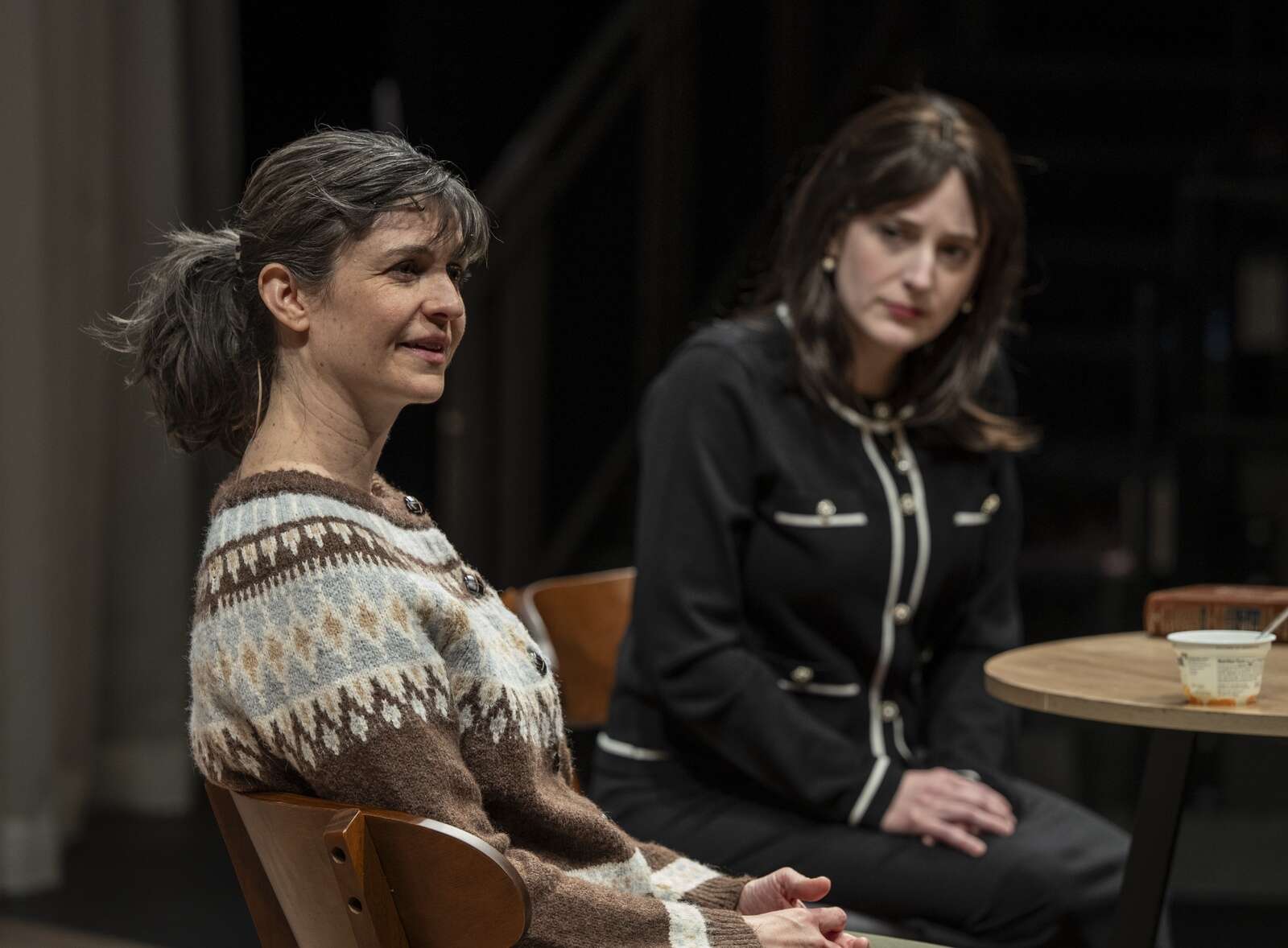 Mary Jane (Lucy Carapetyan), left, mother of a toddler with severe disabilities, shares her son Alex’s story with Amelia (Kaylah Marie Crosby) in Northlight Theatre’s “Mary Jane,” directed by Georgette Verdin. Courtesy of Michael Brosilow