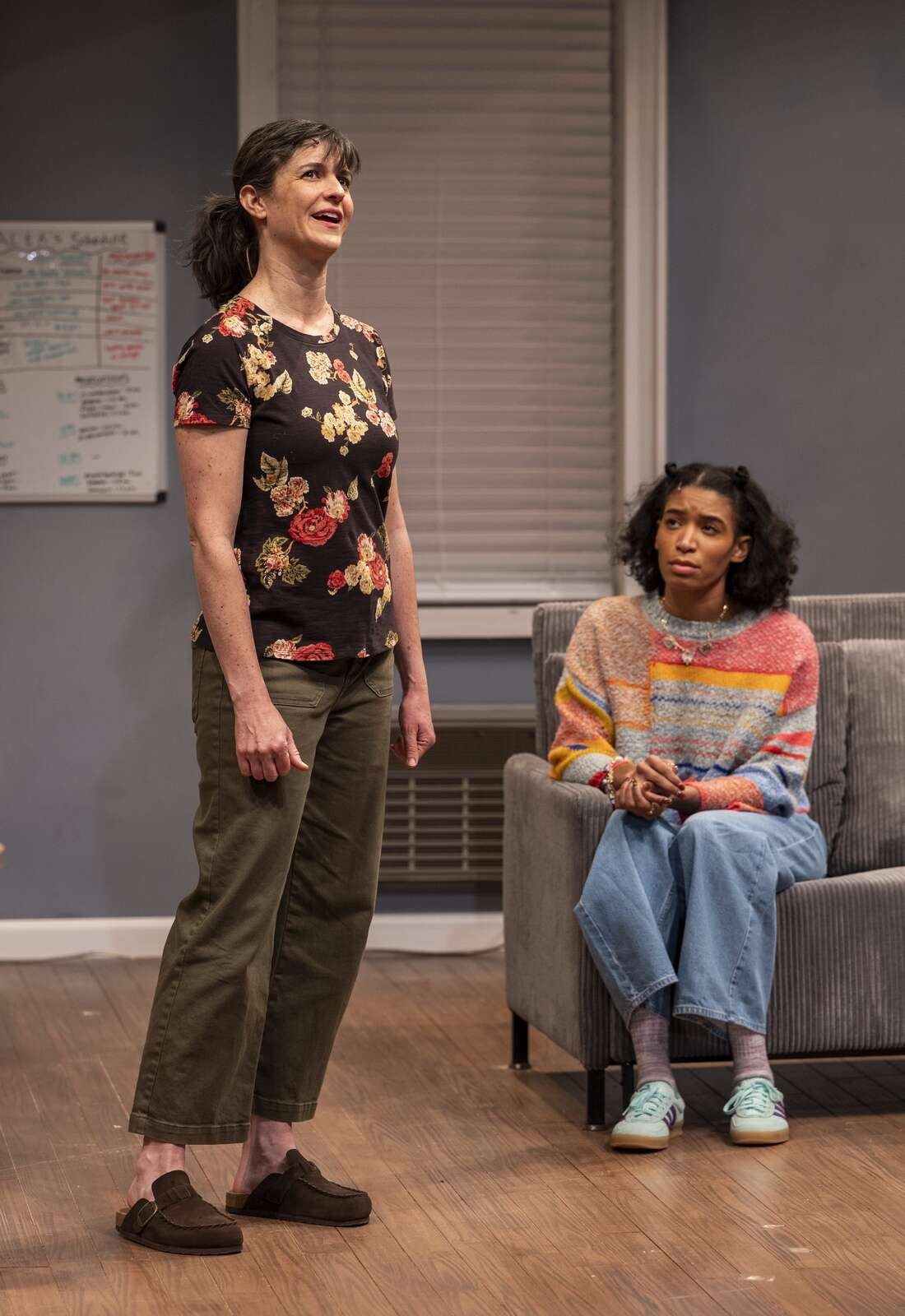 Mary Jane (Lucy Carapetyan), left, and Chaya (Dara Cameron) meet at the hospital where their disabled children are being treated in the Chicago-area premiere of “Mary Jane,” running through Feb. 22 at Northlight Theatre. Courtesy of Michael Brosilow