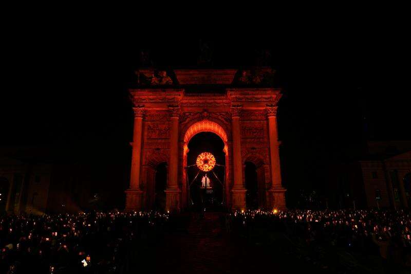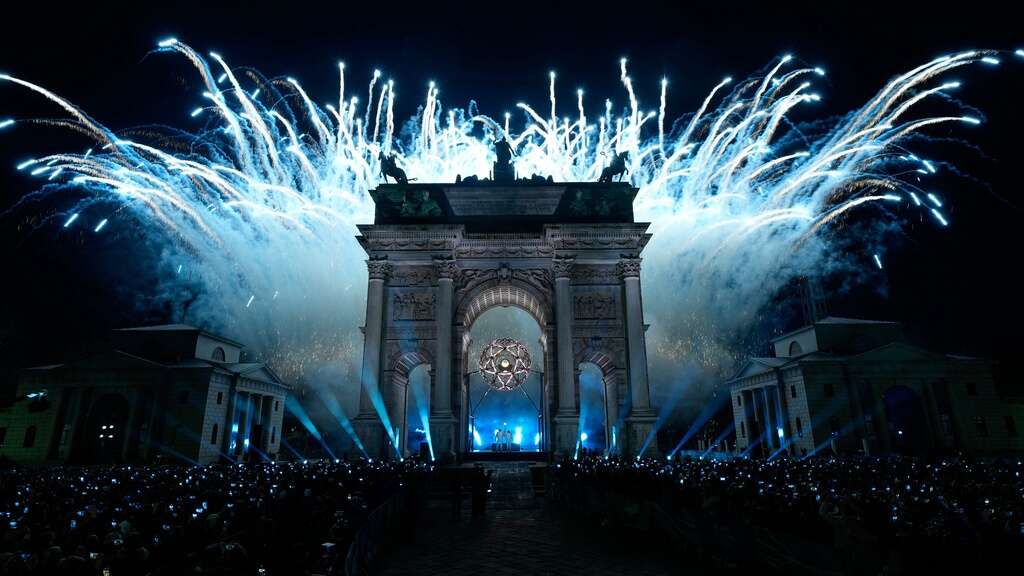 Soon, tenor Andrea Bocelli's voice was belting out Puccini’s “Nessun Dorma" and its closing refrain of “Vincerò,” Italian for “I will win!" As he concluded, torch bearers headed out of the arena toward a cauldron at the Arch of Peace, 2½ miles (4 kilometers) from San Siro.