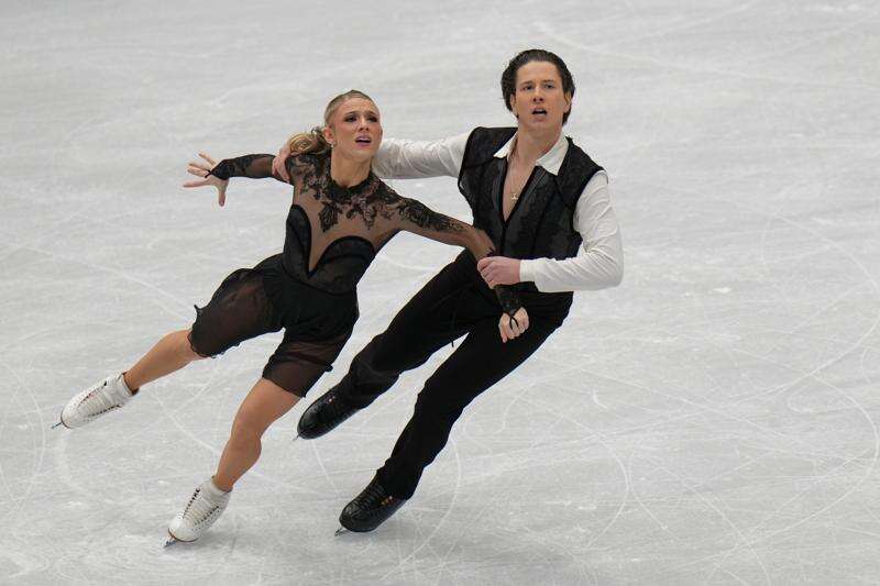 Emilea Zingas and Vadym Kolesnik of the United States compete during the Ice Dance Free Dance in the ISU Four Continents Figure Skating Championships, in Beijing, China, Friday, Jan. 23, 2026. (AP Photo/Andy Wong) (AP Photo/Andy Wong)