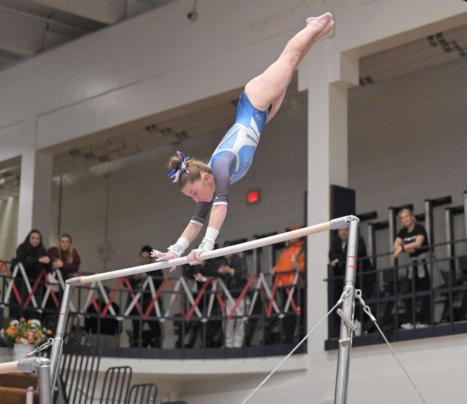 Prairie Ridge got off to a great start on vault and uneven bars to surge ahead of the six-team field with 73.875 points after two events.