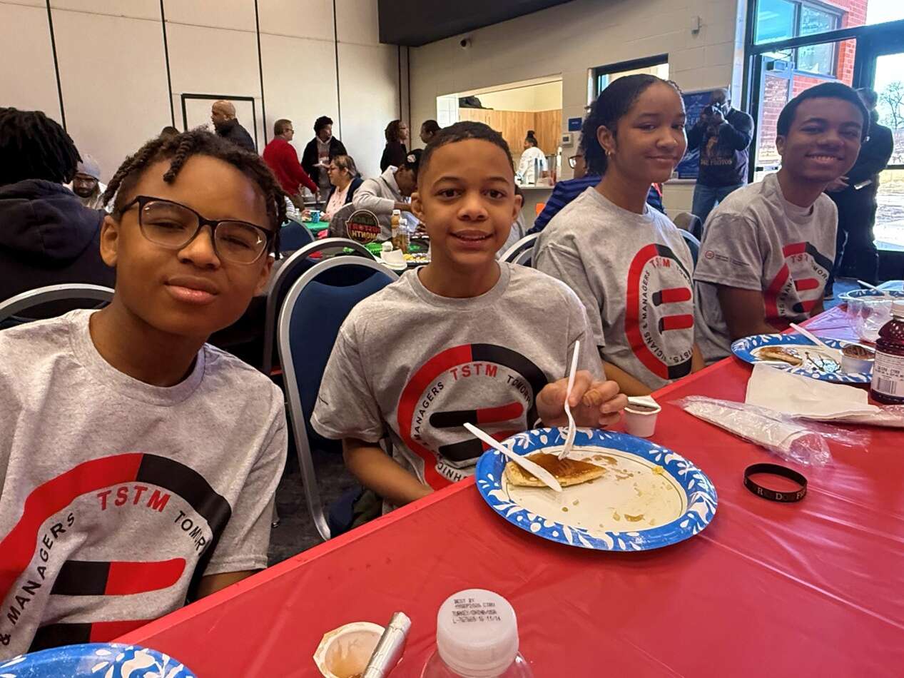 Guests enjoyed plates filled with eggs, bacon, fruit, and freshly made pancakes before taking part in a lively student-versus-adult “Black History Jeopardy” trivia competition, which ended in a win for the students.