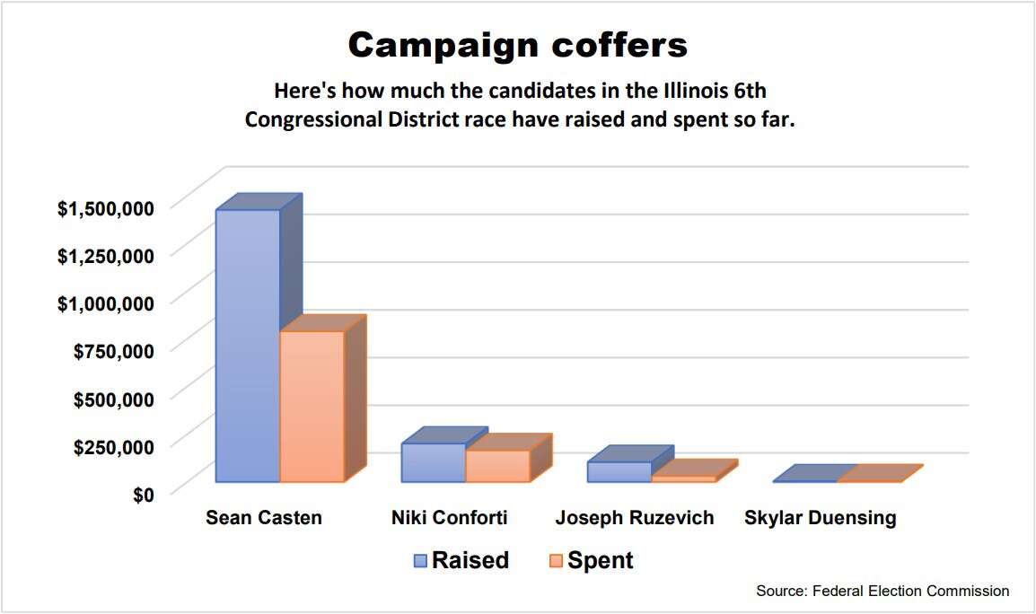 Casten, who is seeking a fifth term in Congress, had $1.3 million in his campaign coffers as of Dec. 31, Federal Election Commission documents indicate.