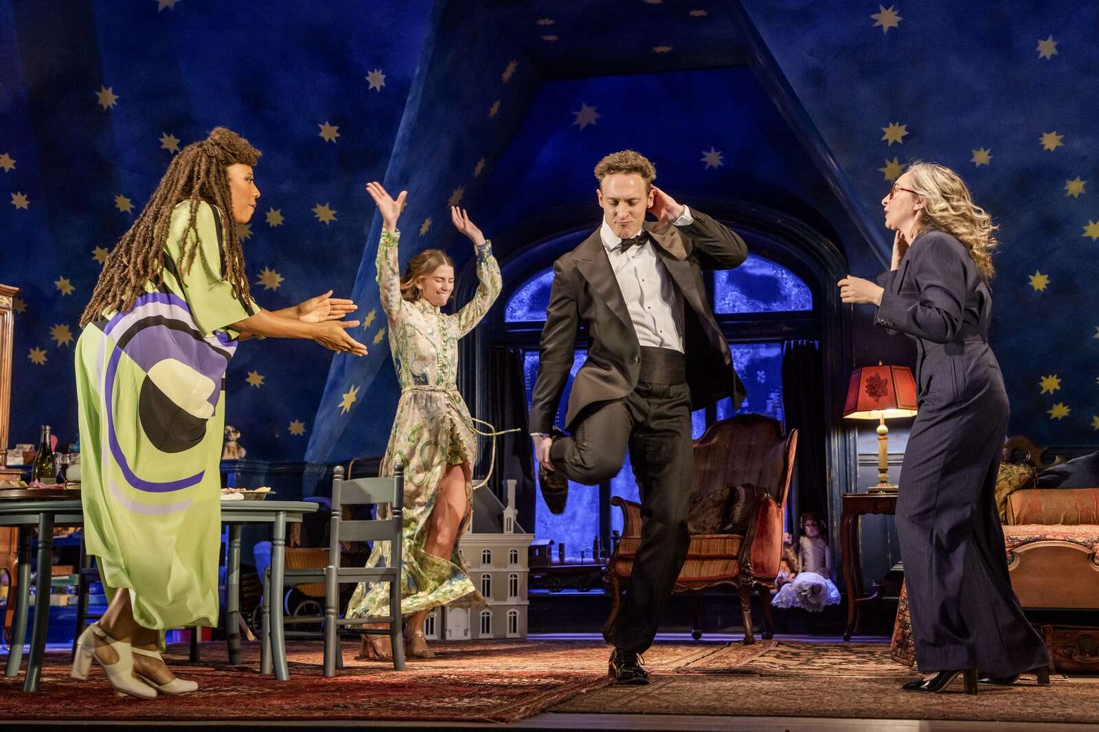 Briskly directed by Robert Falls with solid — at times exceptional — performances, “Holiday” takes place from late 2019 to early 2020. The action unfolds in New York City at the Seton family’s stately, well-appointed Fifth Avenue mansion. (Walt Spangler’s sets, particularly the enchanting attic space that dominates the second act, elicited oohs and aahs from the opening-night audience).
