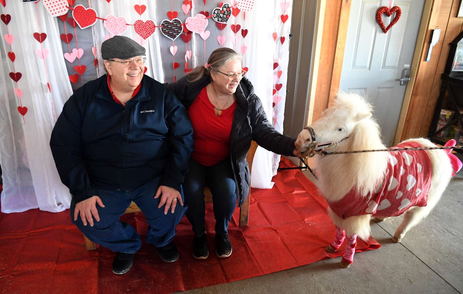 Warren and Regina Coler of Algonquin visit with “Buttercup” Saturday during the SOUL Kisses 4 Valentine's Day event at SOUL Harbour Ranch in Barrington. Joe Lewnard/jlewnard@dailyherald.com