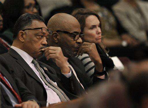 Rev. Jesse Jackson, left, listens as Chicago Mayor Rahm Emanuel speaks during a special City Council meeting that he called to discuss a police abuse scandal Wednesday, Dec. 9, 2015, in Chicago. Emanuel apologized for the 2014 shooting of a black teenager Wednesday during the special City Council meeting and promised "complete and total" reform to restore trust in the police. The Associated Press