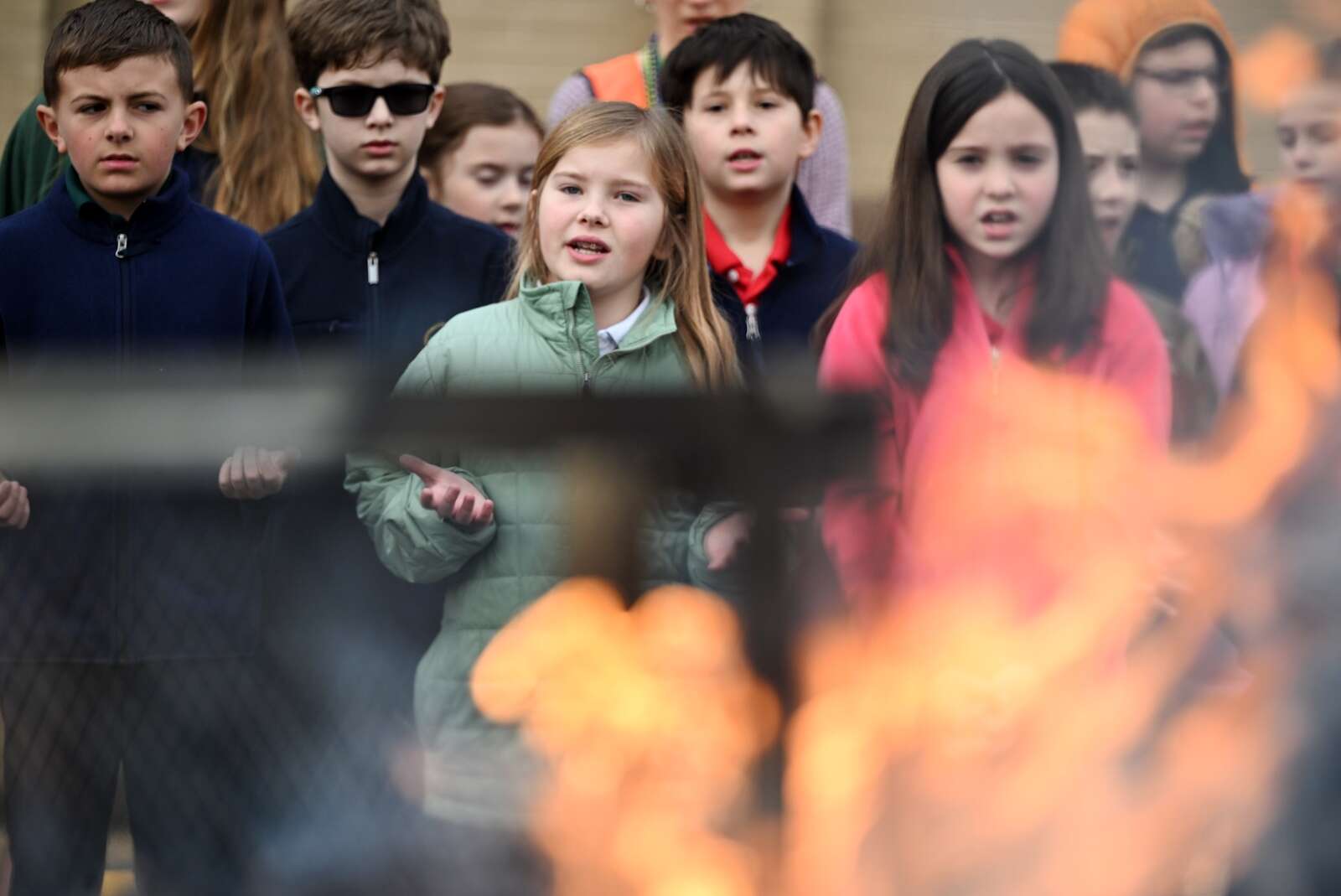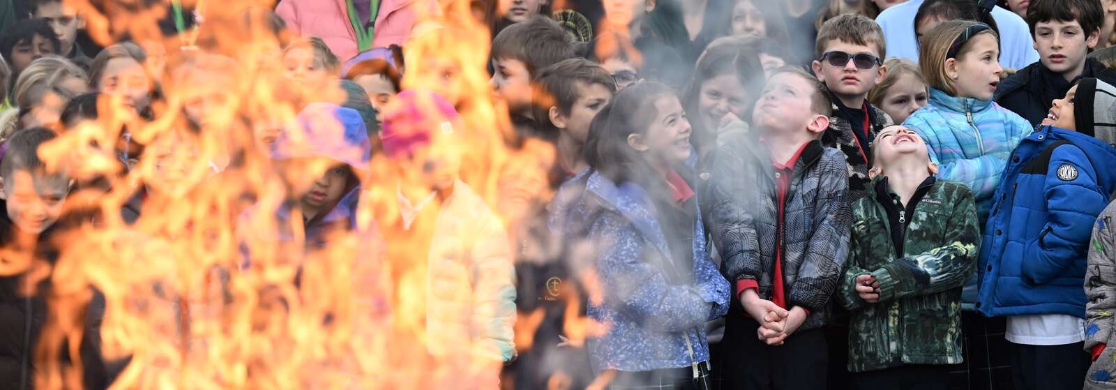 Dried palm fronds engulfed by a ball of flames Tuesday provided students a visual connection to the upcoming Lenten season at St. Theresa Catholic School in Palatine.