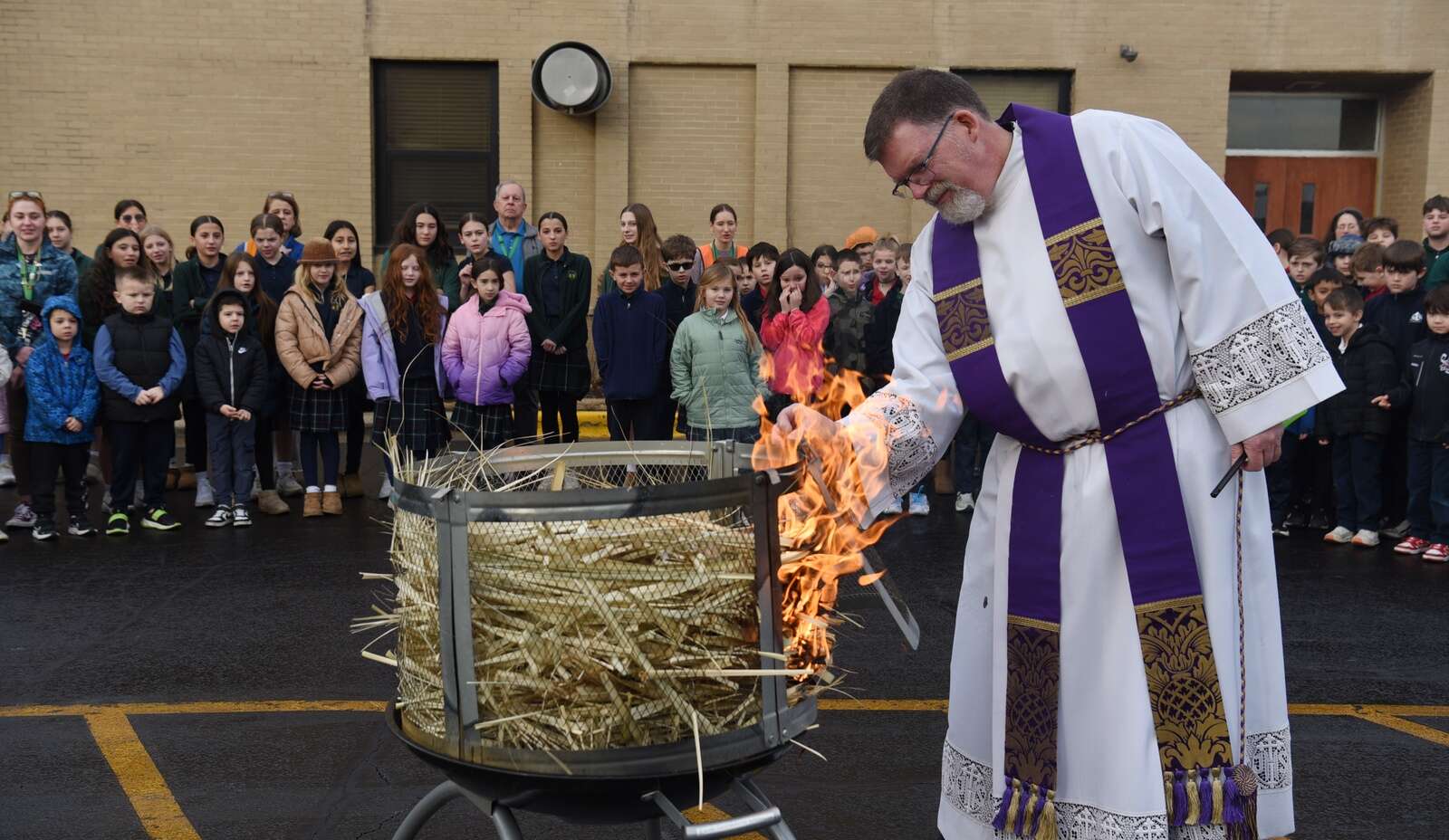 Burning palms provide students with visual connection to Ash Wednesday, start of Lent